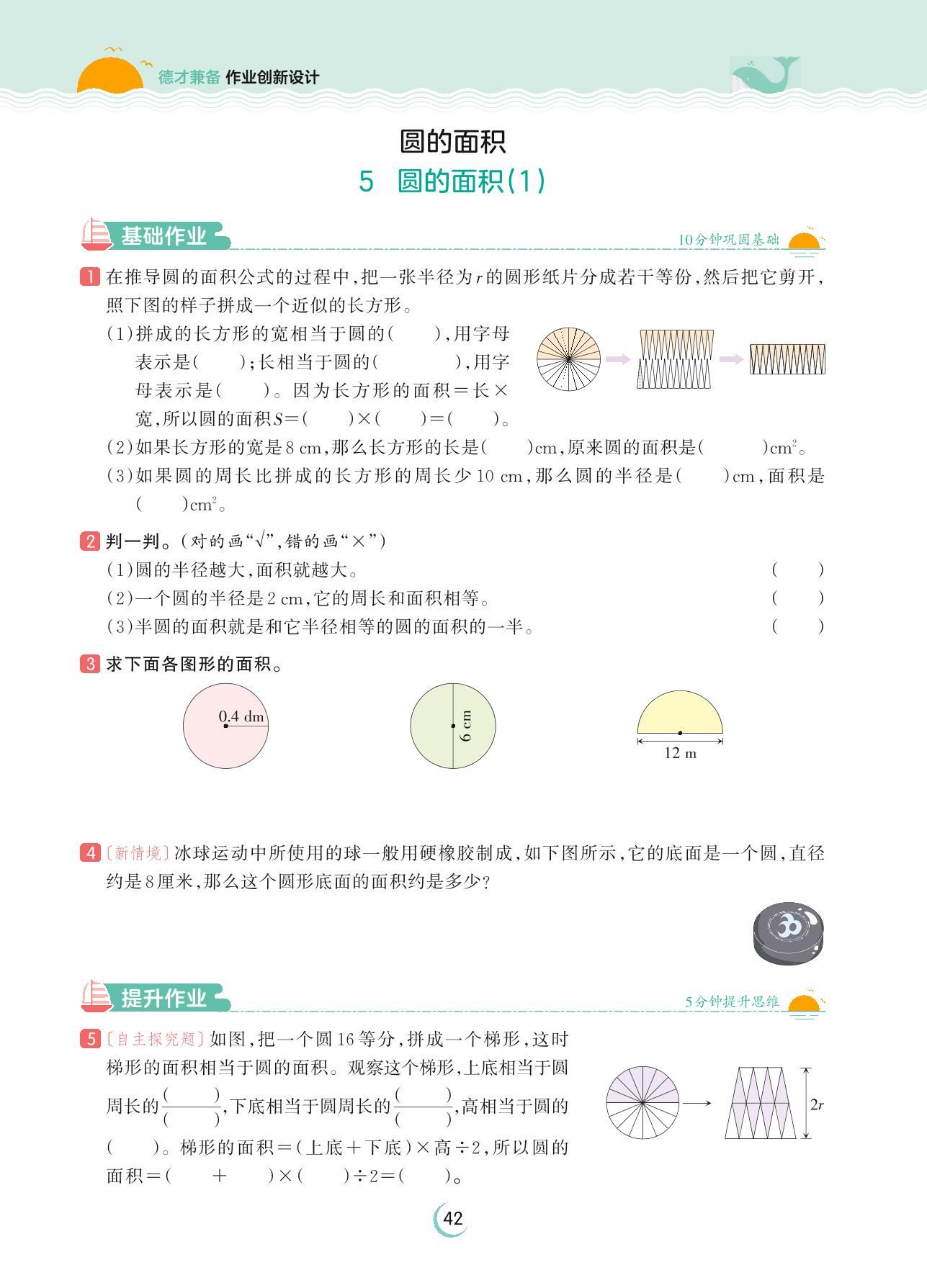 2023上册六年级数学人教版 第五单元 圆——5 圆的面积(1)