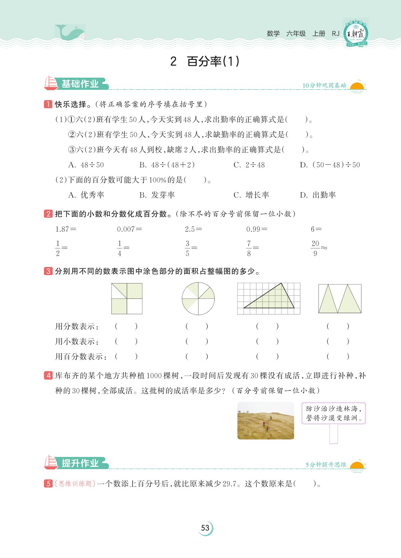 2023上册六年级数学人教版 第六单元 百分数(一)——2 百分率(1)