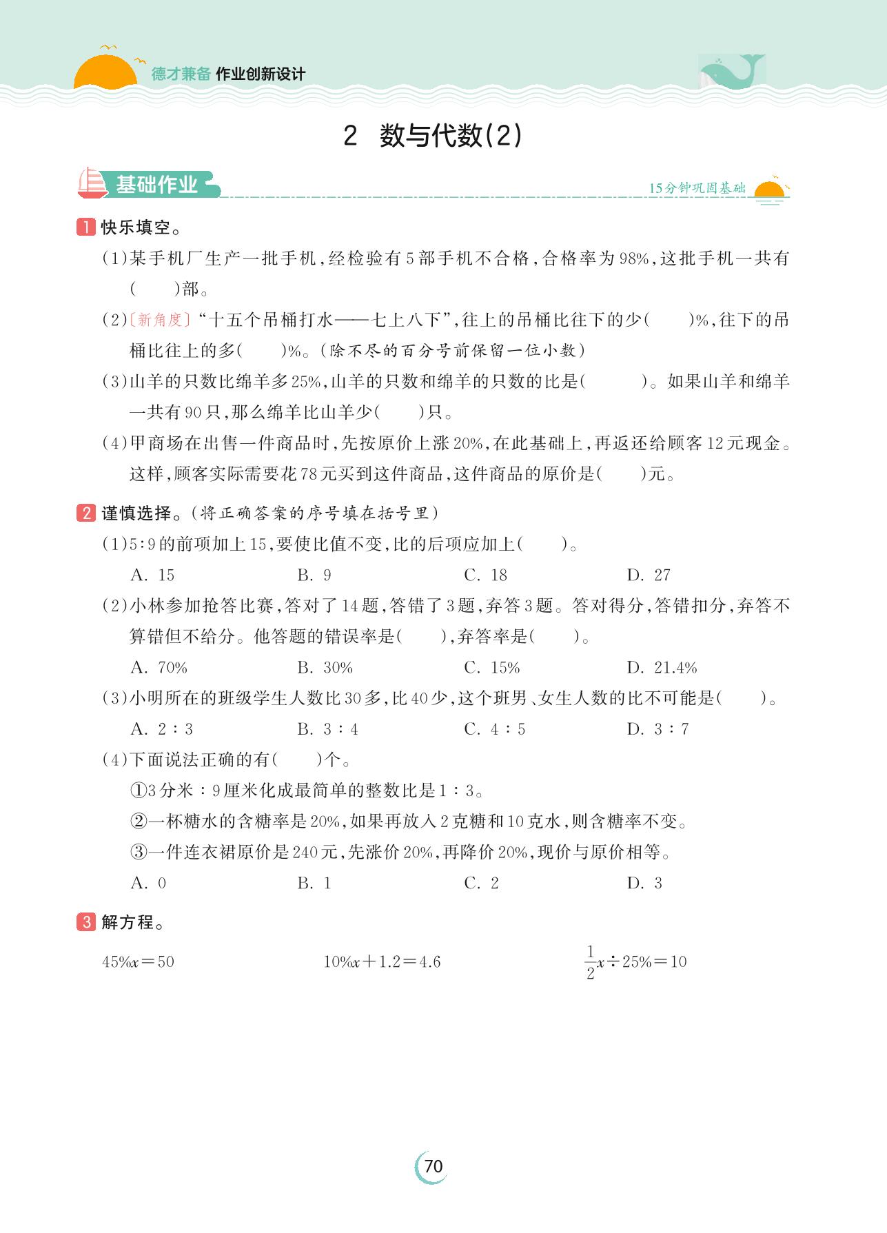 2023上册六年级数学人教版 第九单元 总复习——2 数与代数(2)