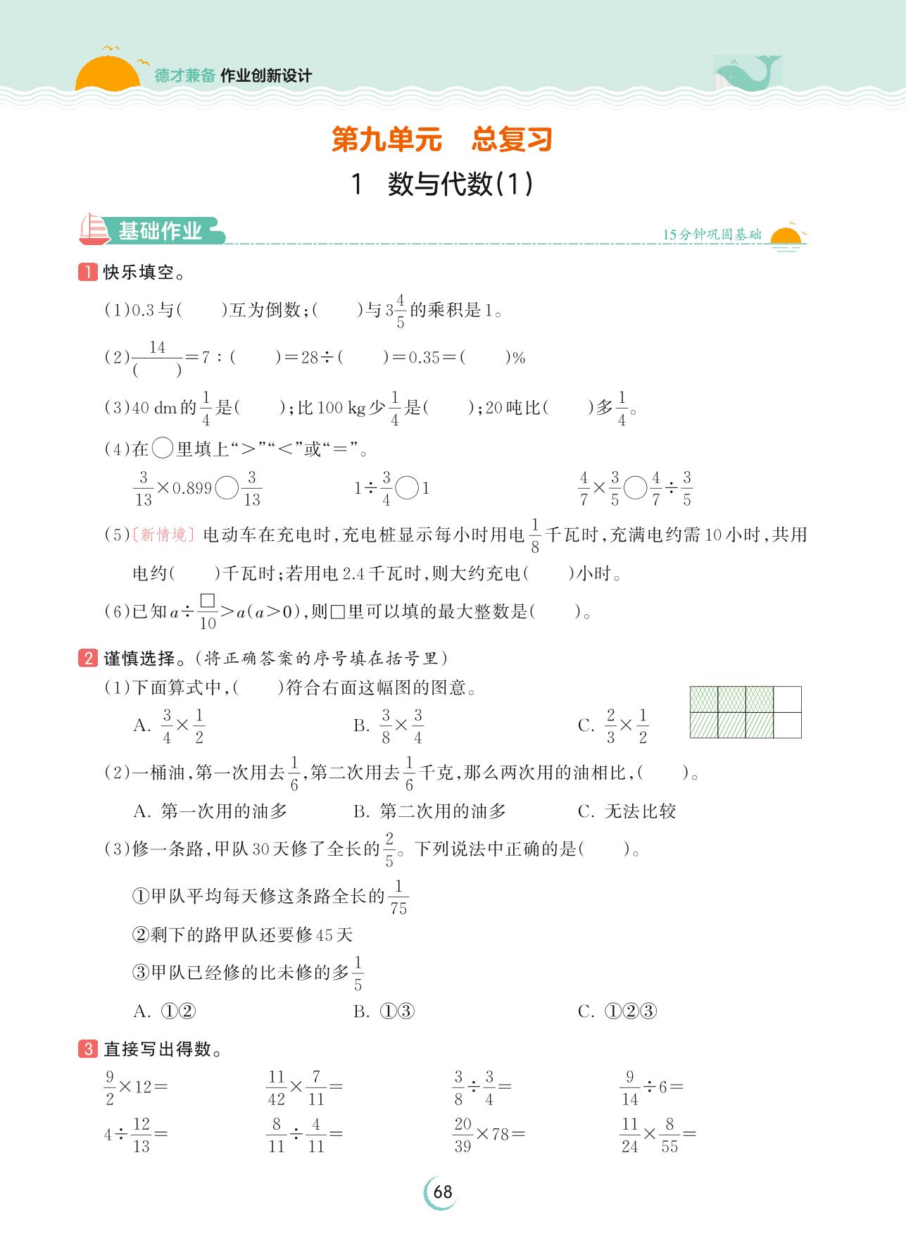 2023上册六年级数学人教版 第九单元 总复习——1 数与代数(1)