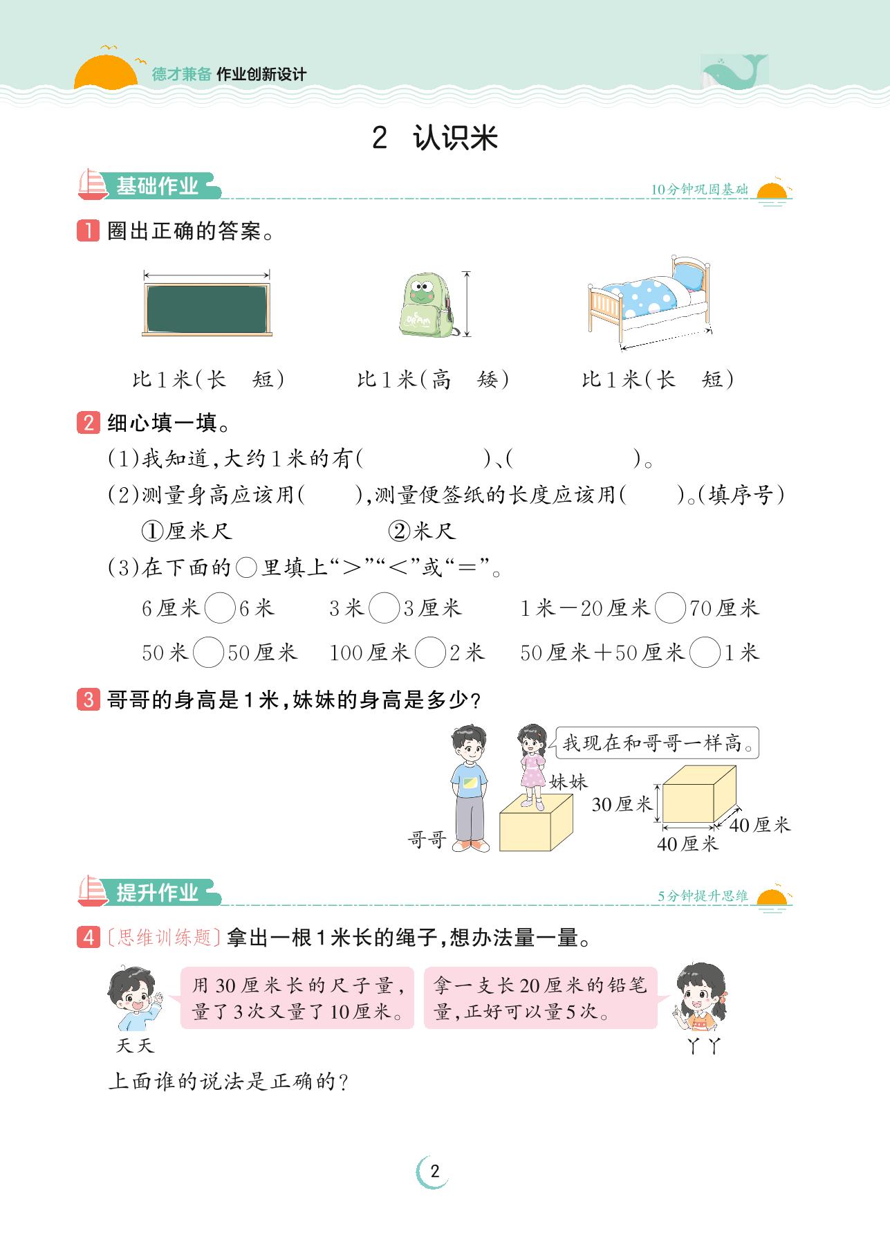 2023上册二年级数学人教版 第一单元 长度单位——2 认识米