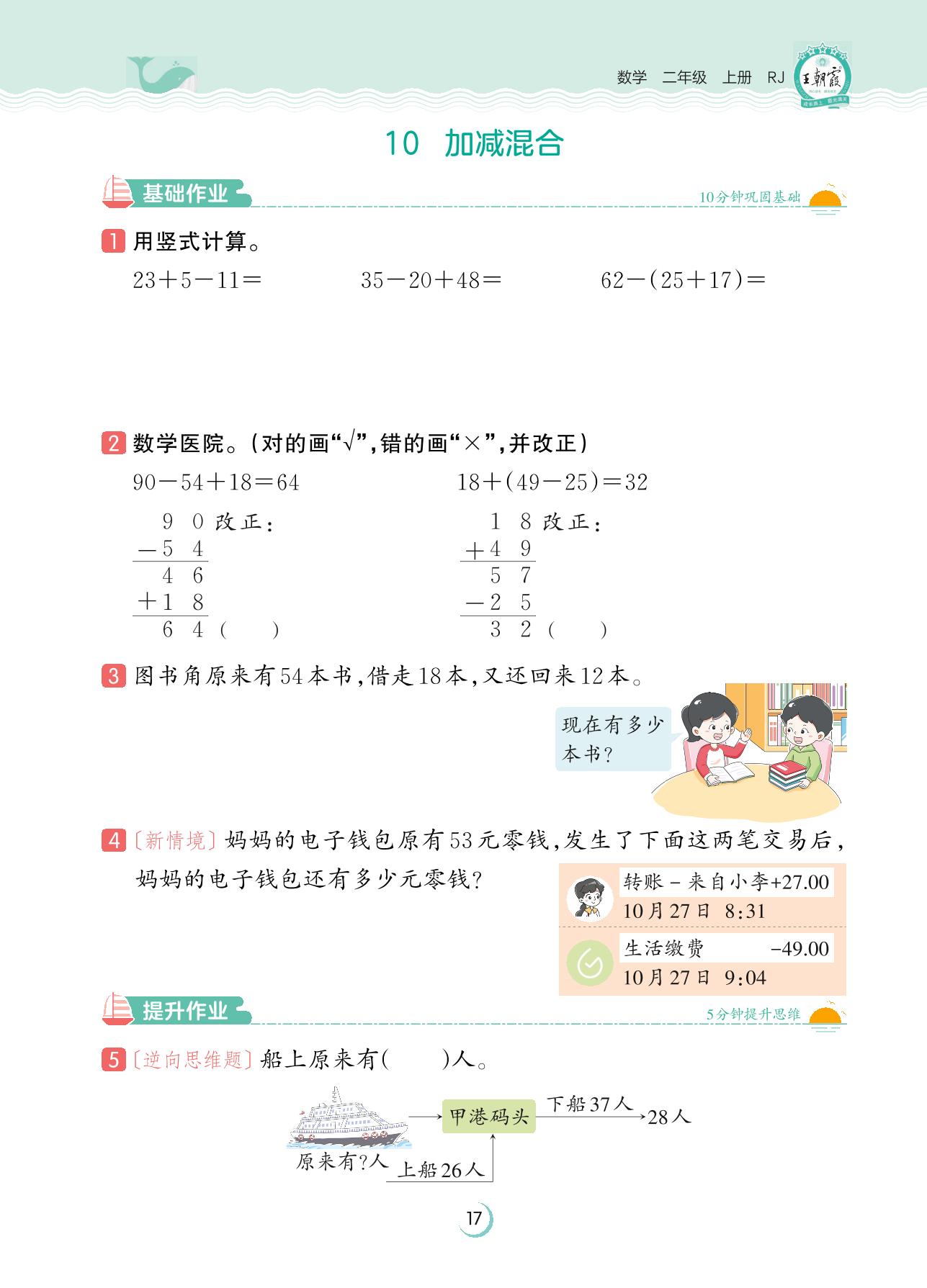 2023上册二年级数学人教版 第二单元 100以内的加法和减法(二)——10 加减混合