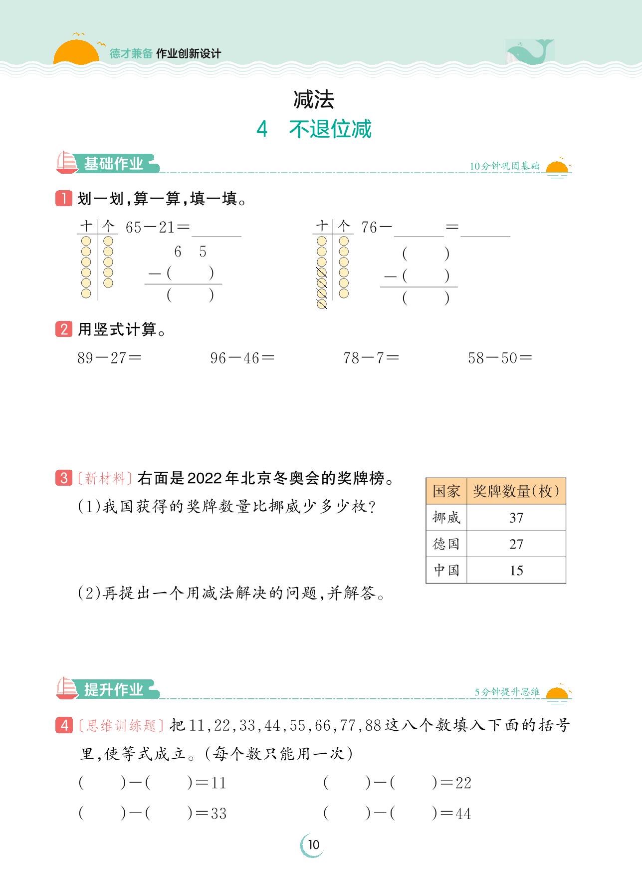 2023上册二年级数学人教版 第二单元 100以内的加法和减法(二)——4 不退位减
