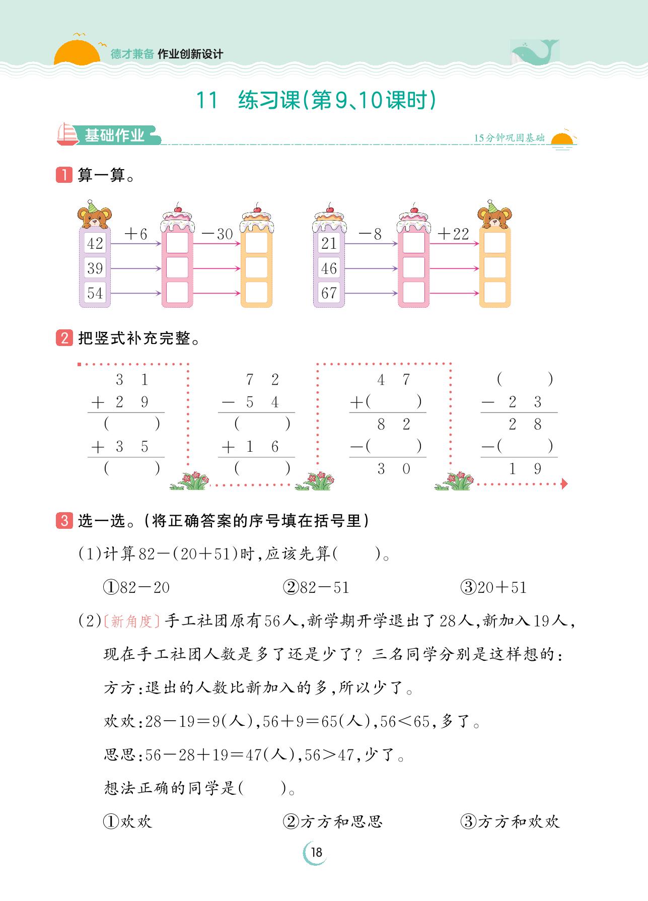 2023上册二年级数学人教版 第二单元 100以内的加法和减法(二)——11 练习课(第9、10课时)