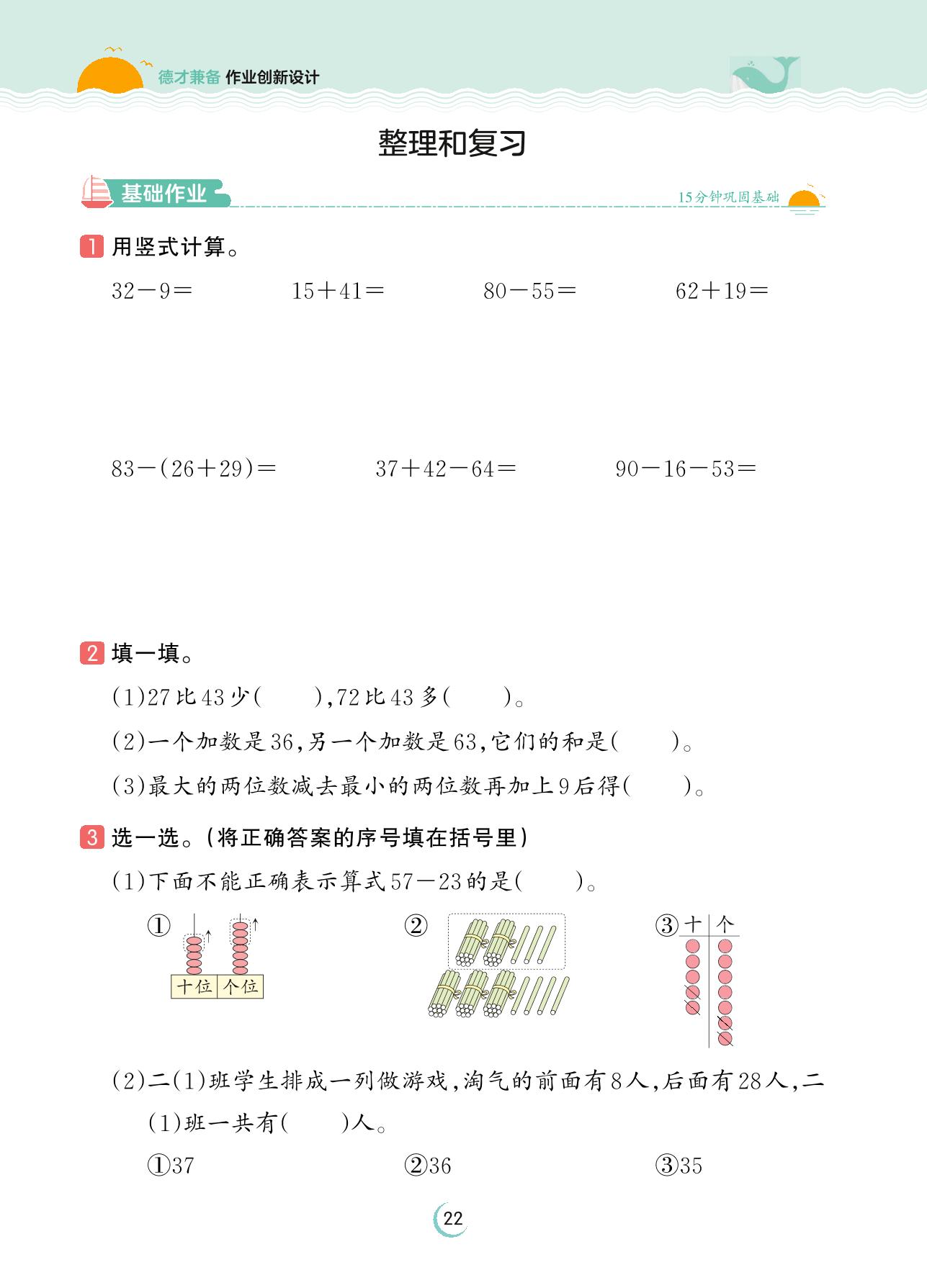 2023上册二年级数学人教版 第二单元 100以内的加法和减法(二)——整理和复习