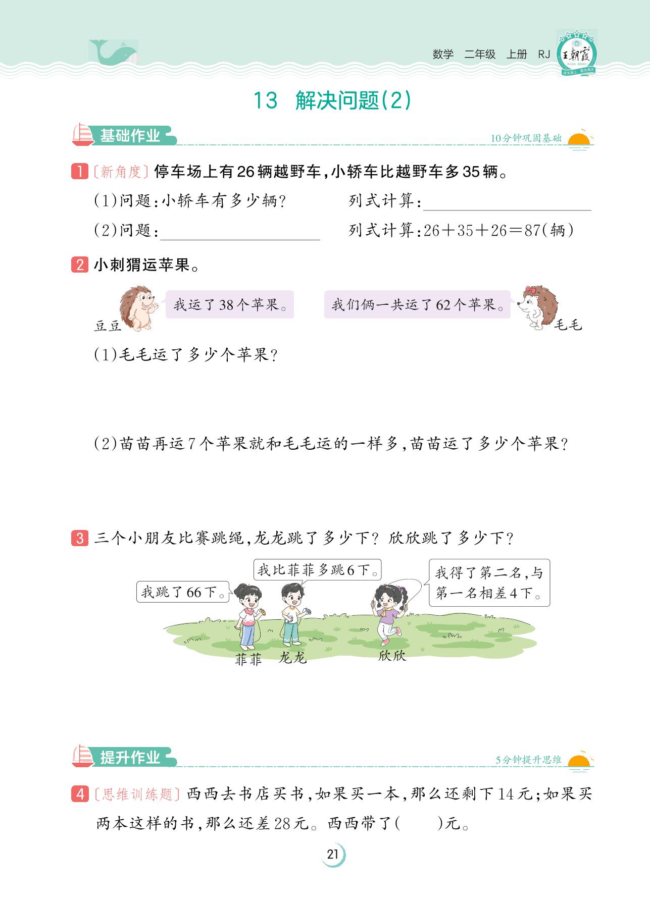 2023上册二年级数学人教版 第二单元 100以内的加法和减法(二)——13 解决问题(2)
