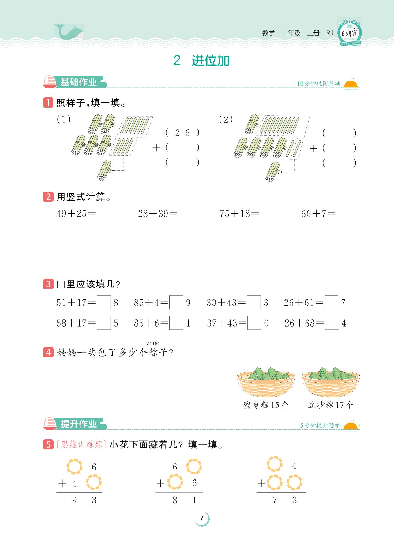 2023上册二年级数学人教版 第二单元 100以内的加法和减法(二)——2 进位加