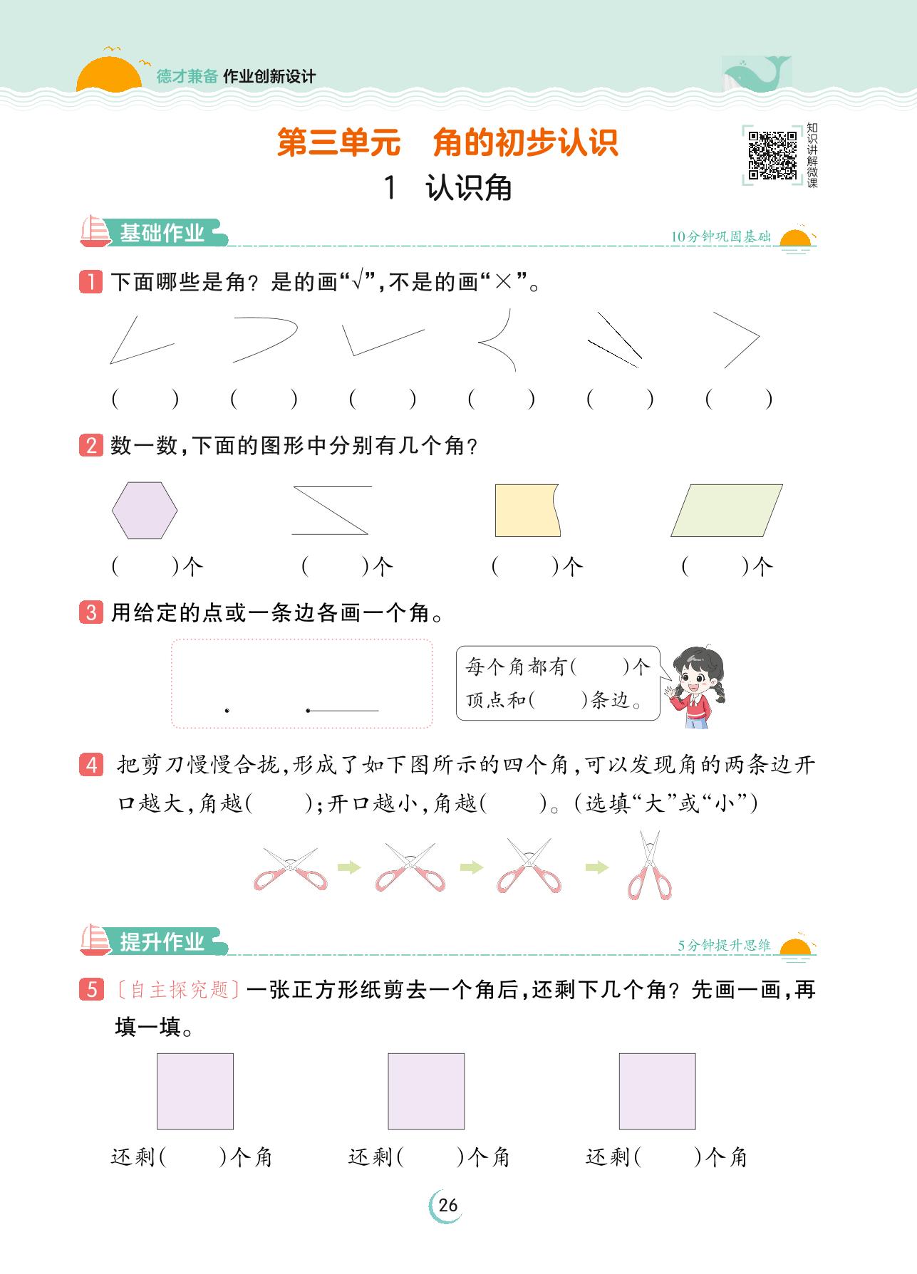 2023上册二年级数学人教版 第三单元 角的初步认识——1 认识角