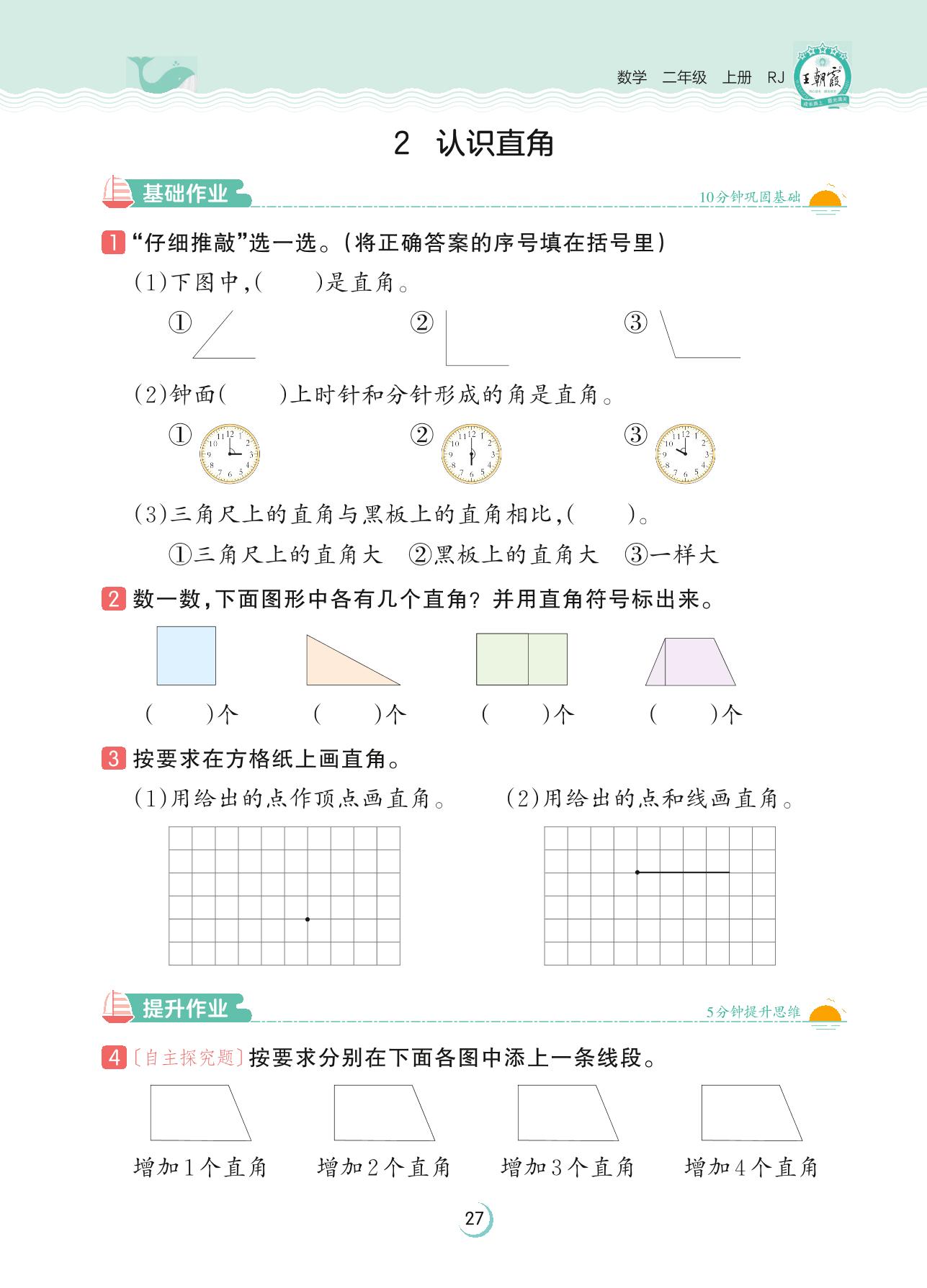 2023上册二年级数学人教版 第三单元 角的初步认识——2 认识直角