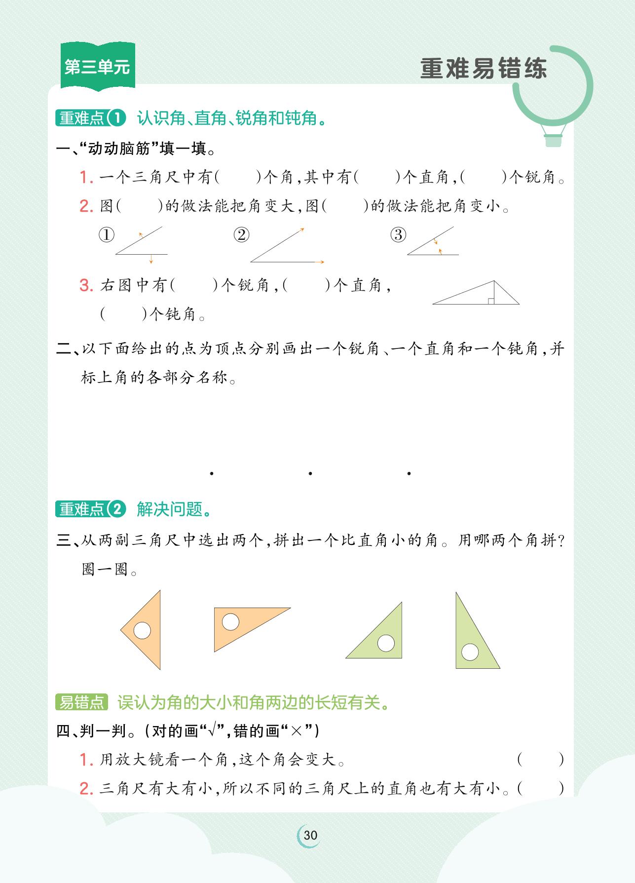 2023上册二年级数学人教版 第三单元 角的初步认识——第三单元重难易错练