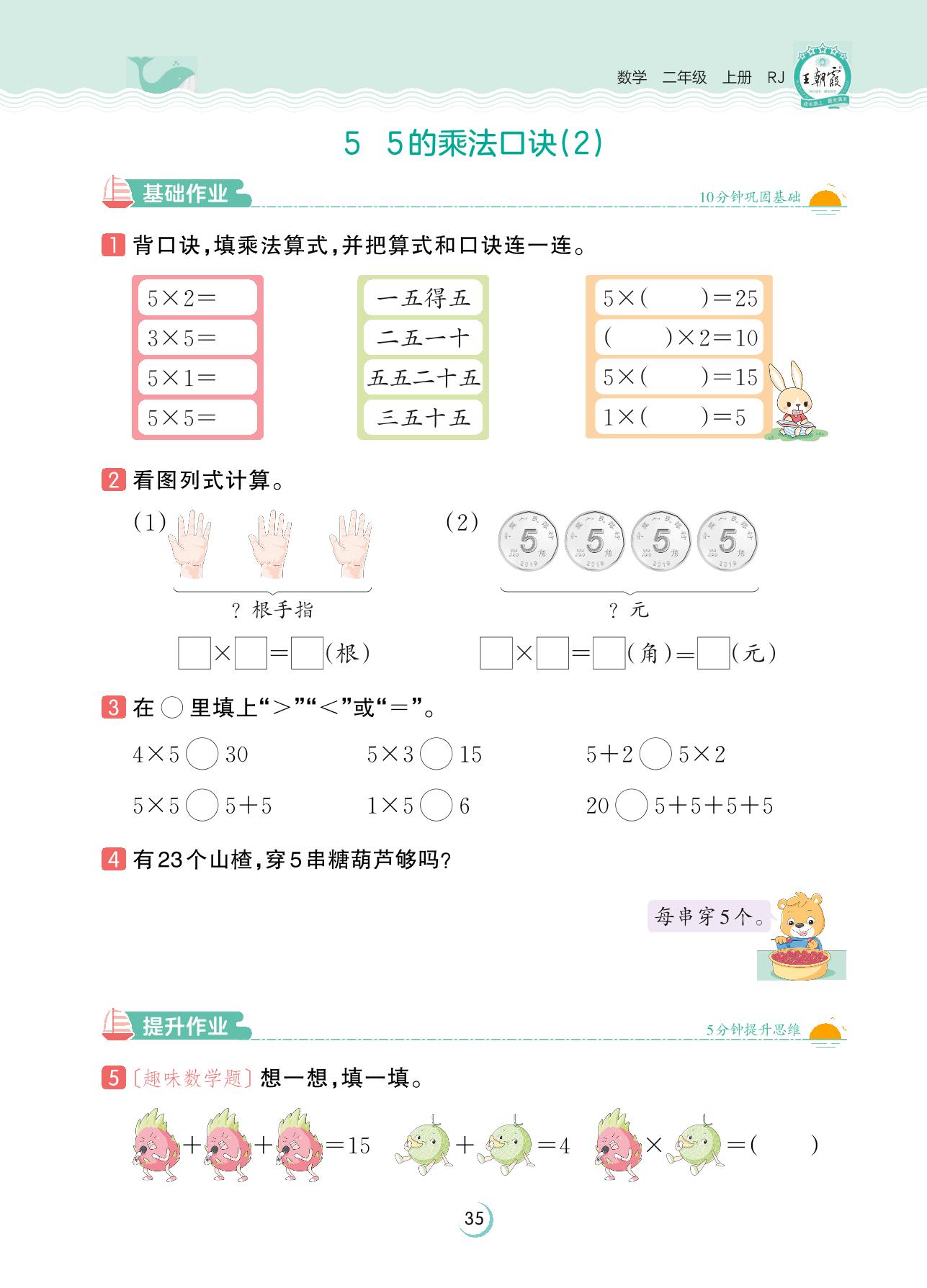 2023上册二年级数学人教版 第四单元 表内乘法(一)——5 5的乘法口诀(2)