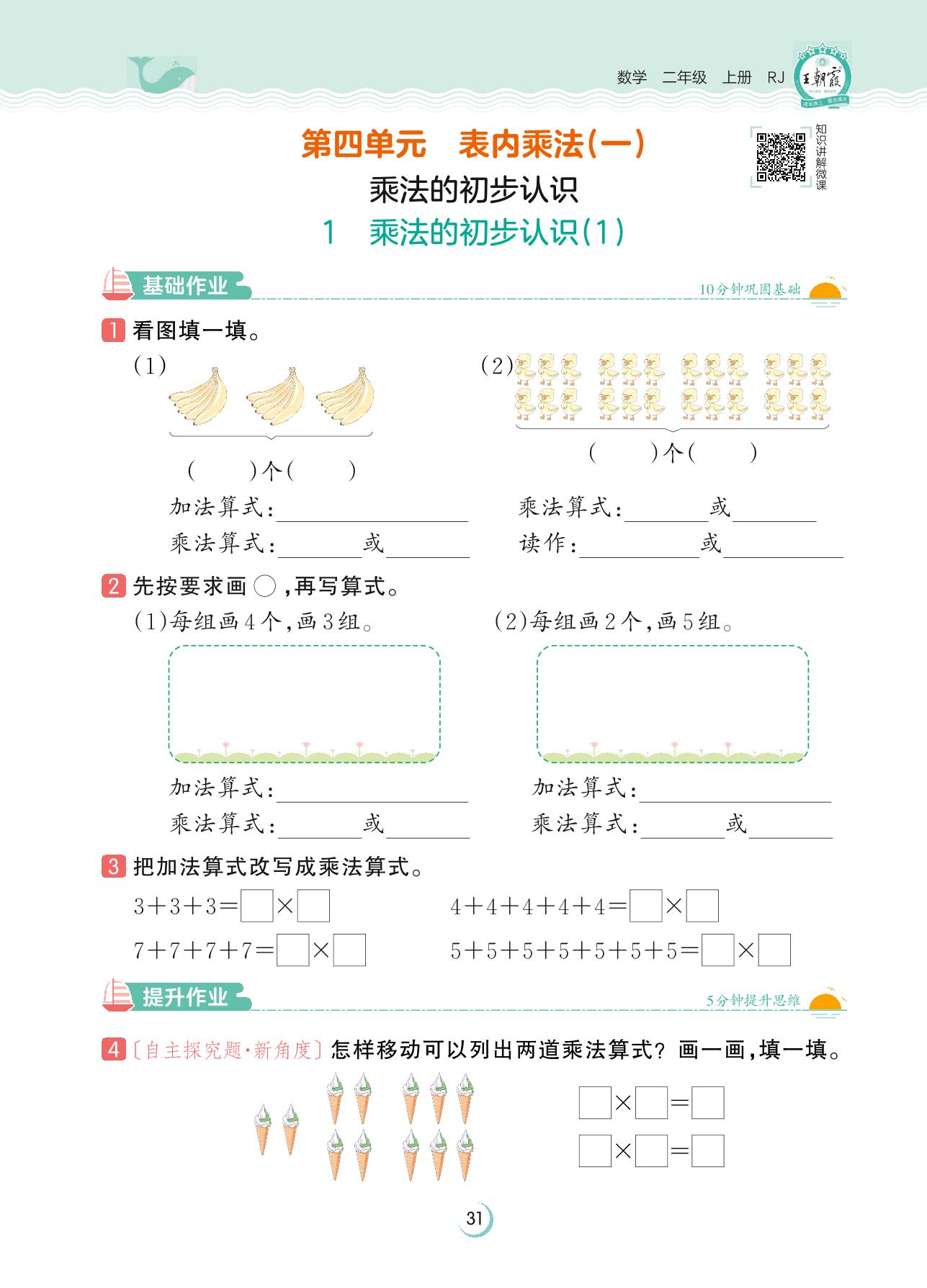 2023上册二年级数学人教版 第四单元 表内乘法(一)——1 乘法的初步认识(1)