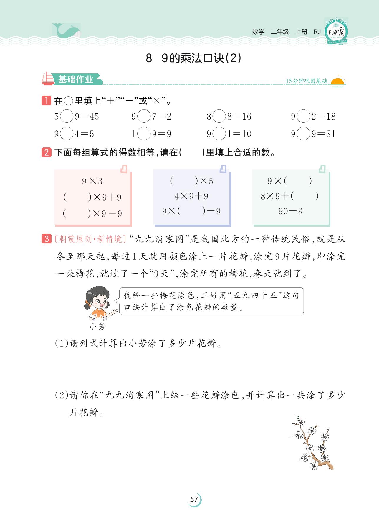 2023上册二年级数学人教版 第六单元 表内乘法(二)——8 9的乘法口诀(2)