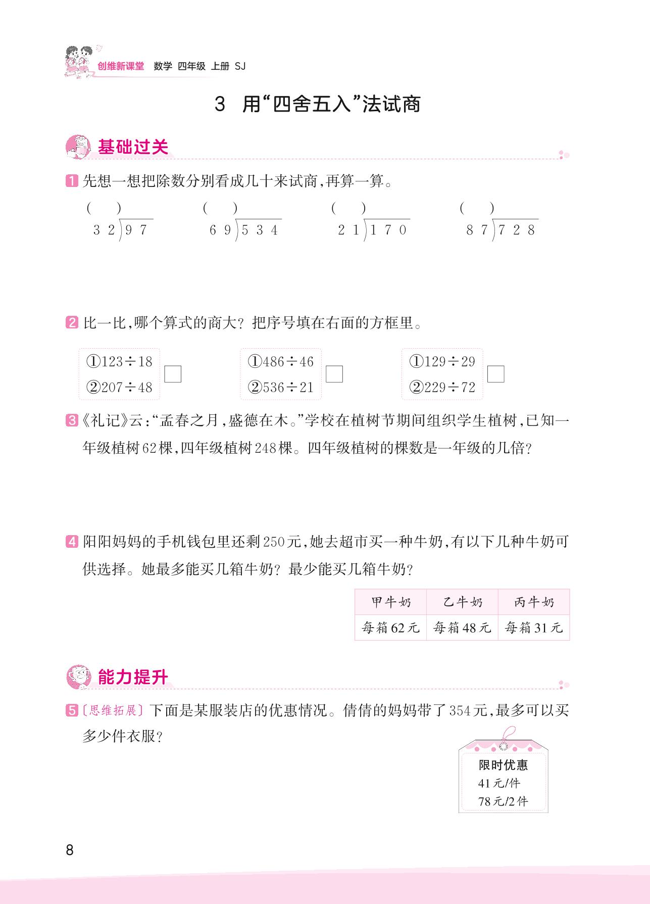 2023上册四年级数学苏教版 二 两、三位数除以两位数——3 用“四舍五入”法试商