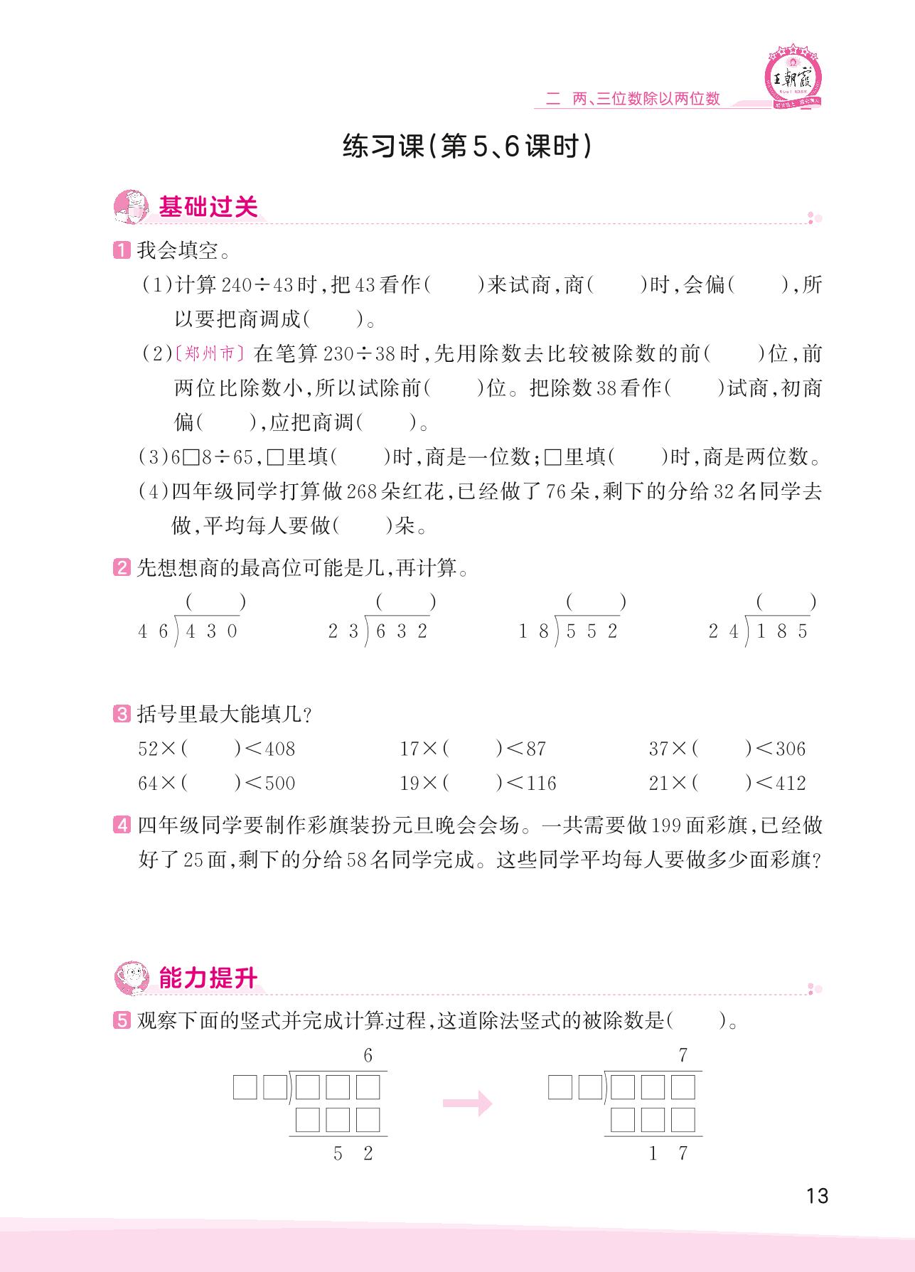 2023上册四年级数学苏教版 二 两、三位数除以两位数——练习课(第5、6课时)