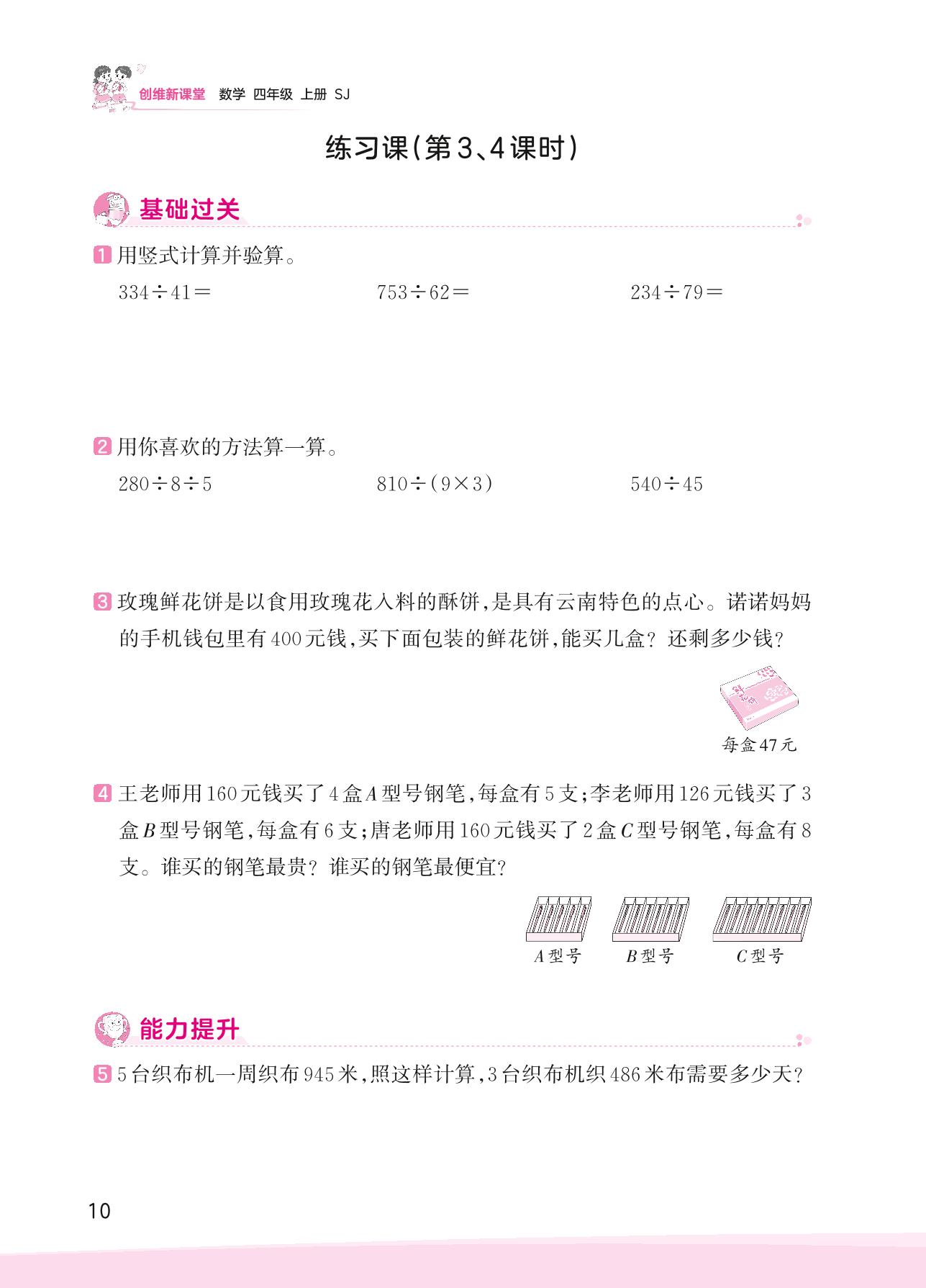 2023上册四年级数学苏教版 二 两、三位数除以两位数——练习课(第3、4课时)