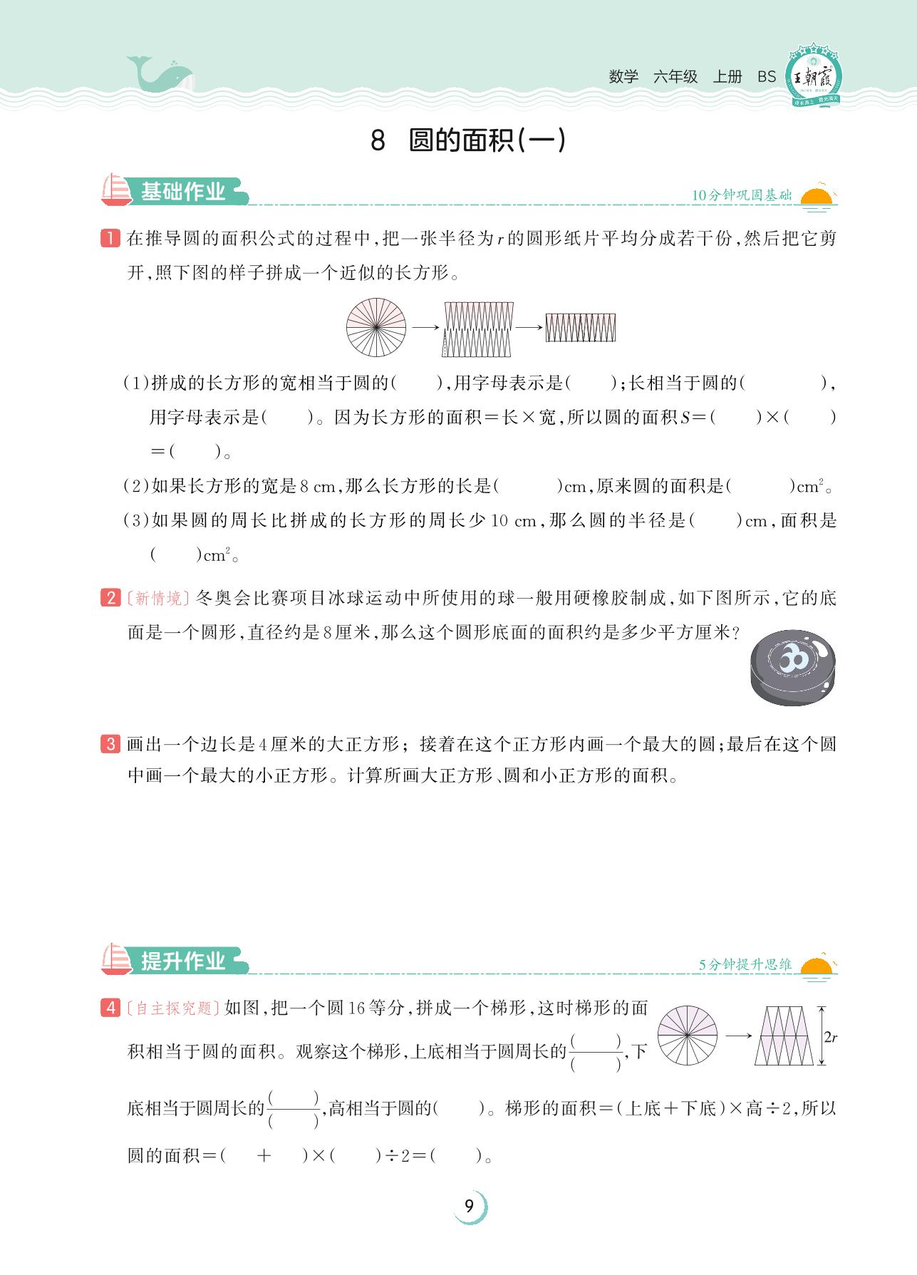 2023上册六年级数学北师版 第一单元 圆——8 圆的面积(一)