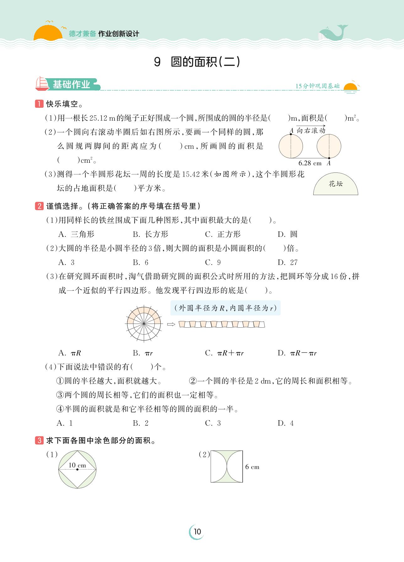 2023上册六年级数学北师版 第一单元 圆——9 圆的面积(二)