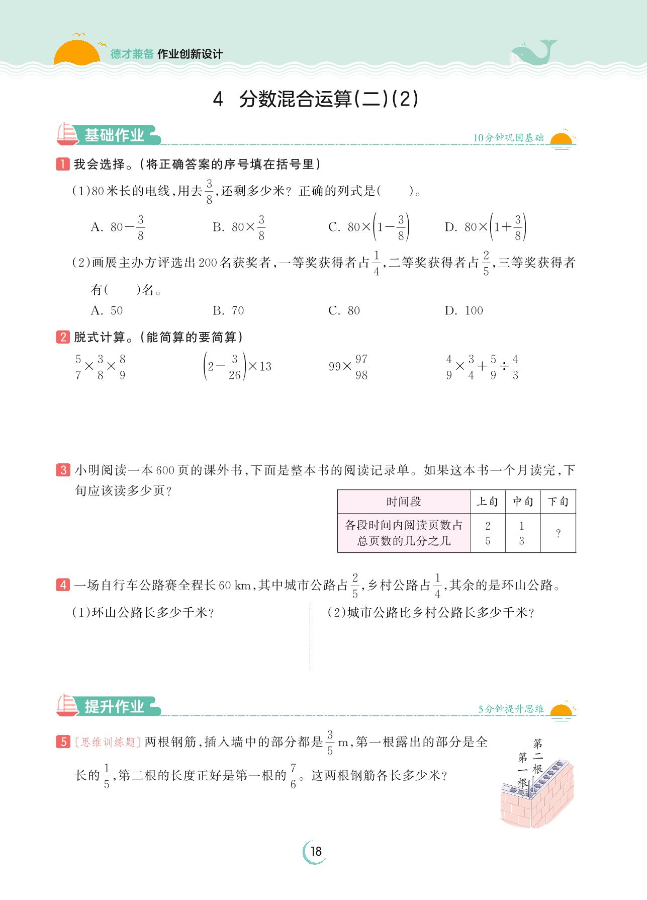 2023上册六年级数学北师版 第二单元 分数混合运算——4 分数混合运算(二)(2)