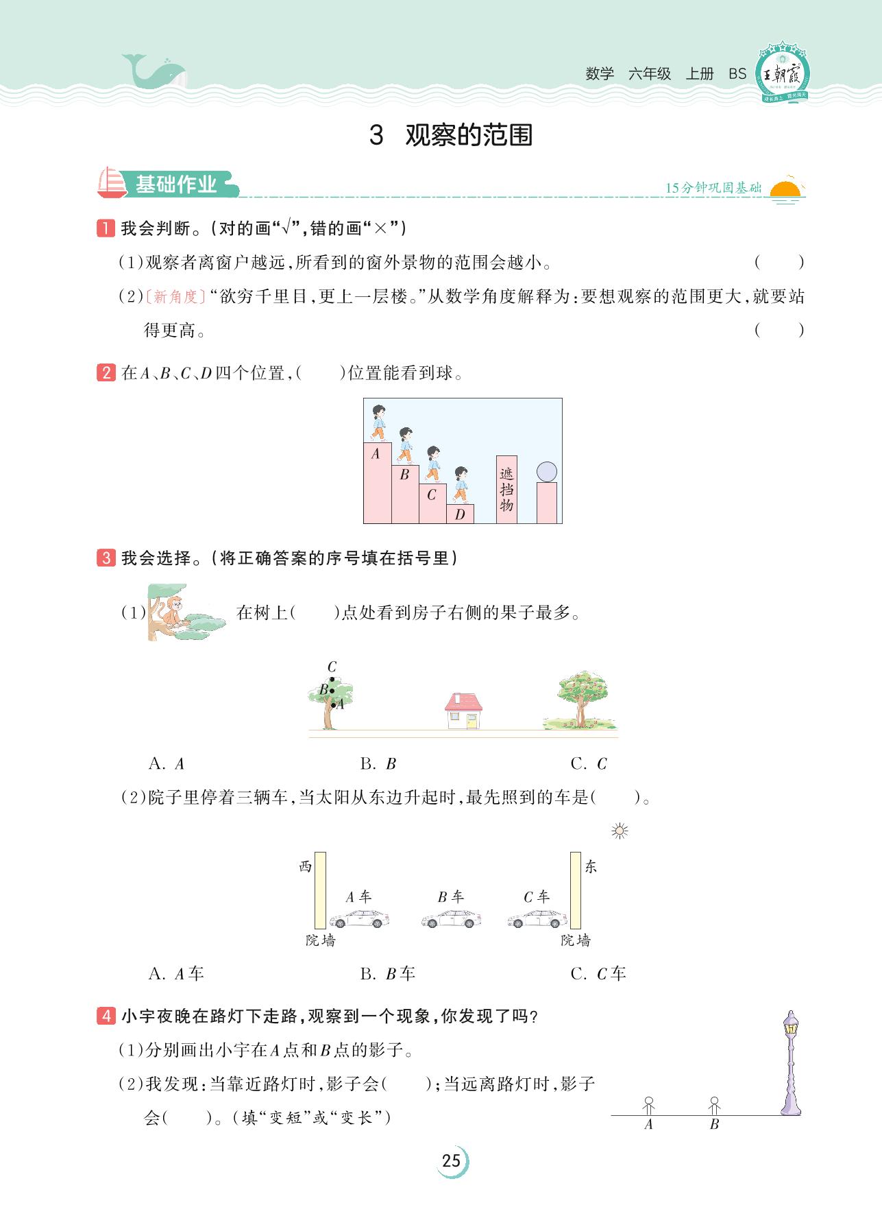 2023上册六年级数学北师版 第三单元 观察物体——3 观察的范围