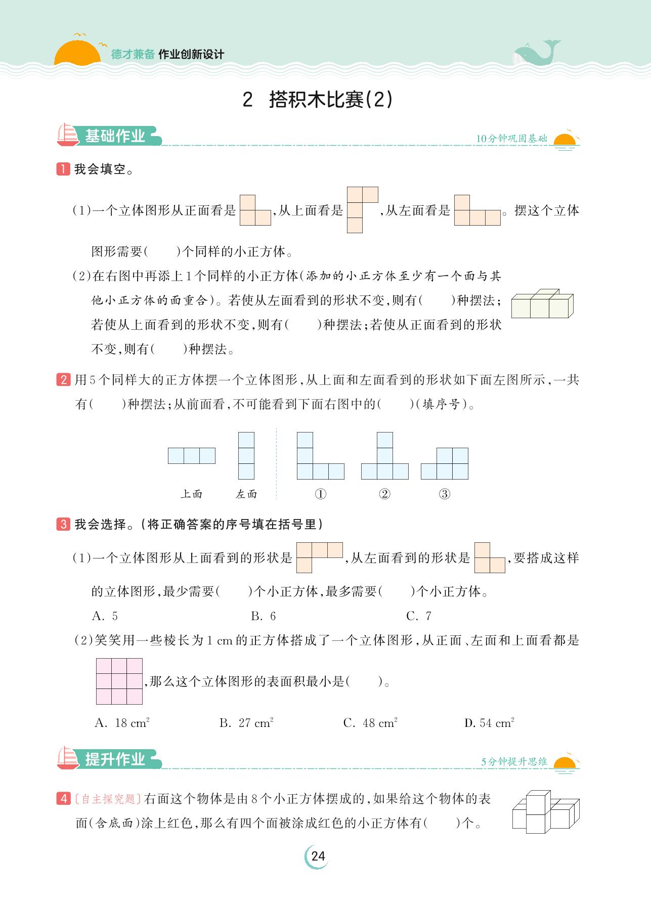 2023上册六年级数学北师版 第三单元 观察物体——2 搭积木比赛(2)