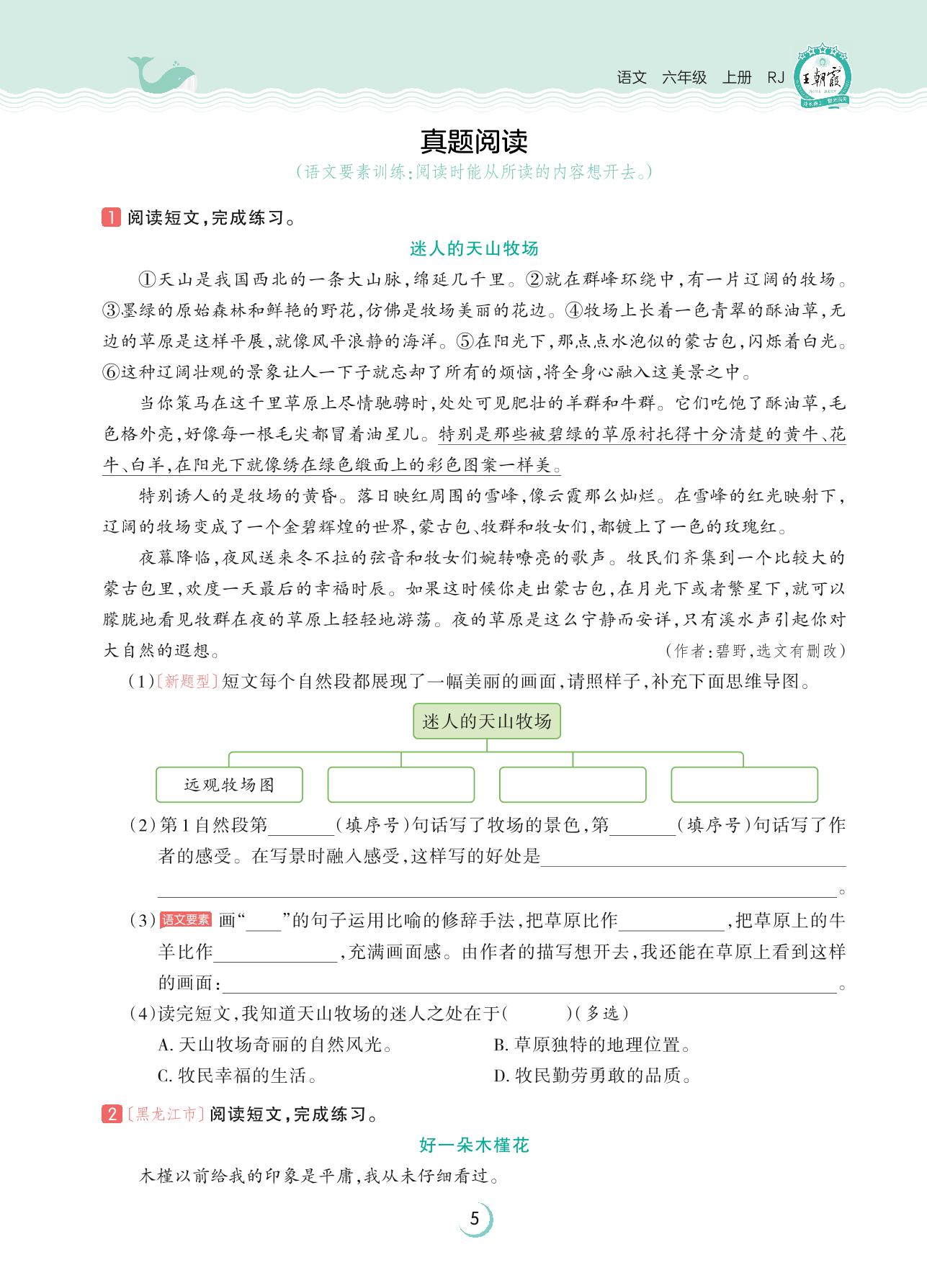 2023上册一年级语文人教版 第一单元 触摸自然——真题阅读(语文要素训练)