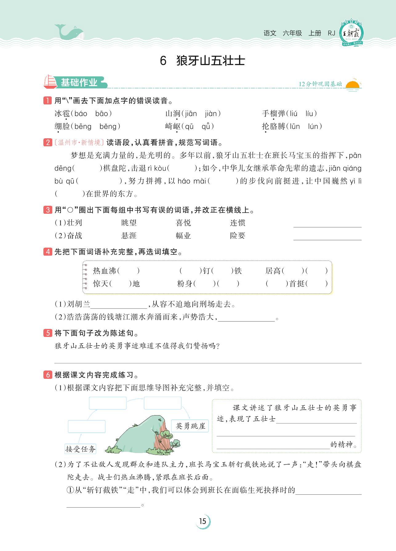 2023上册六年级语文人教版 第二单元 革命岁月——6 狼牙山五壮士