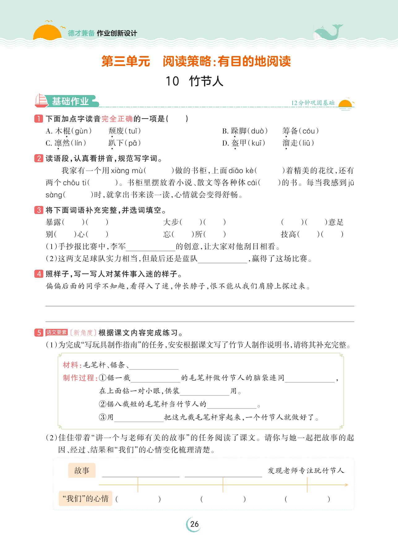 2023上册六年级语文人教版 第三单元 阅读策略 有目的地阅读——10 竹节人