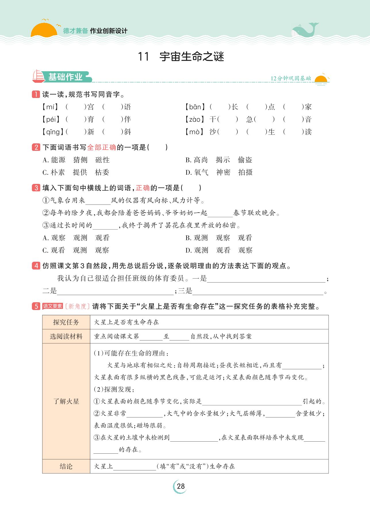 2023上册六年级语文人教版 第三单元 阅读策略 有目的地阅读——11 宇宙生命之谜