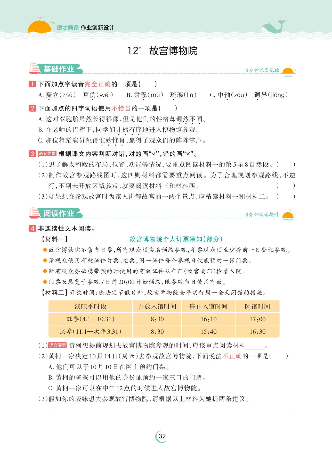 2023上册六年级语文人教版 第三单元 阅读策略 有目的地阅读——12 故宫博物院