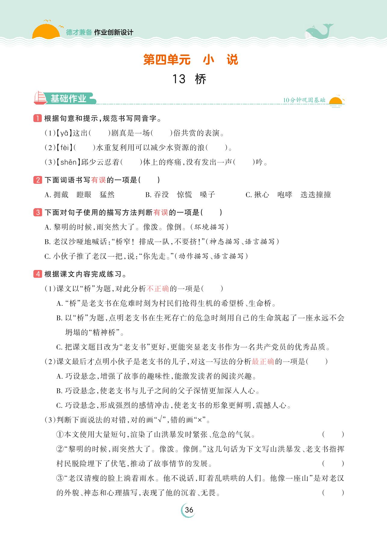 2023上册六年级语文人教版 第四单元 小说——13 桥