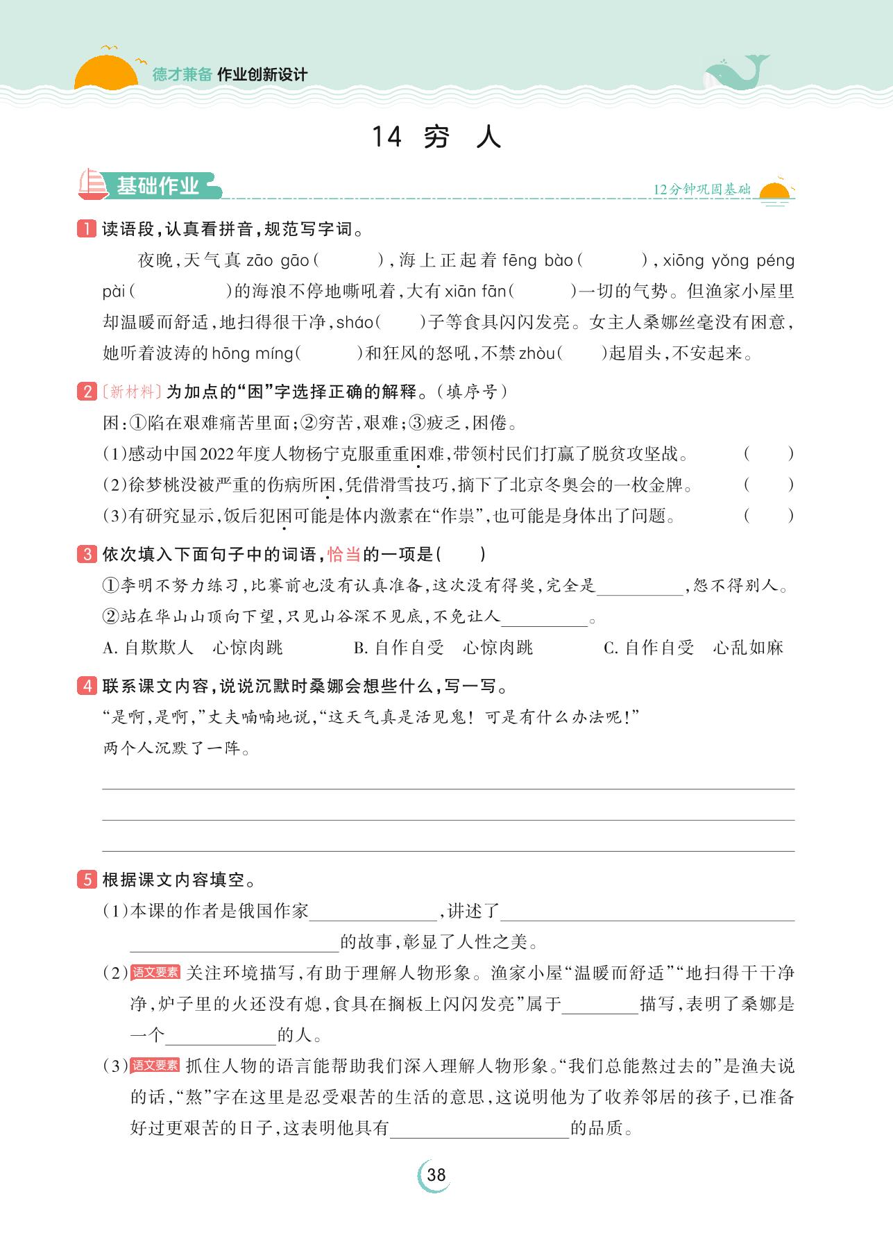 2023上册六年级语文人教版 第四单元 小说——14 穷人