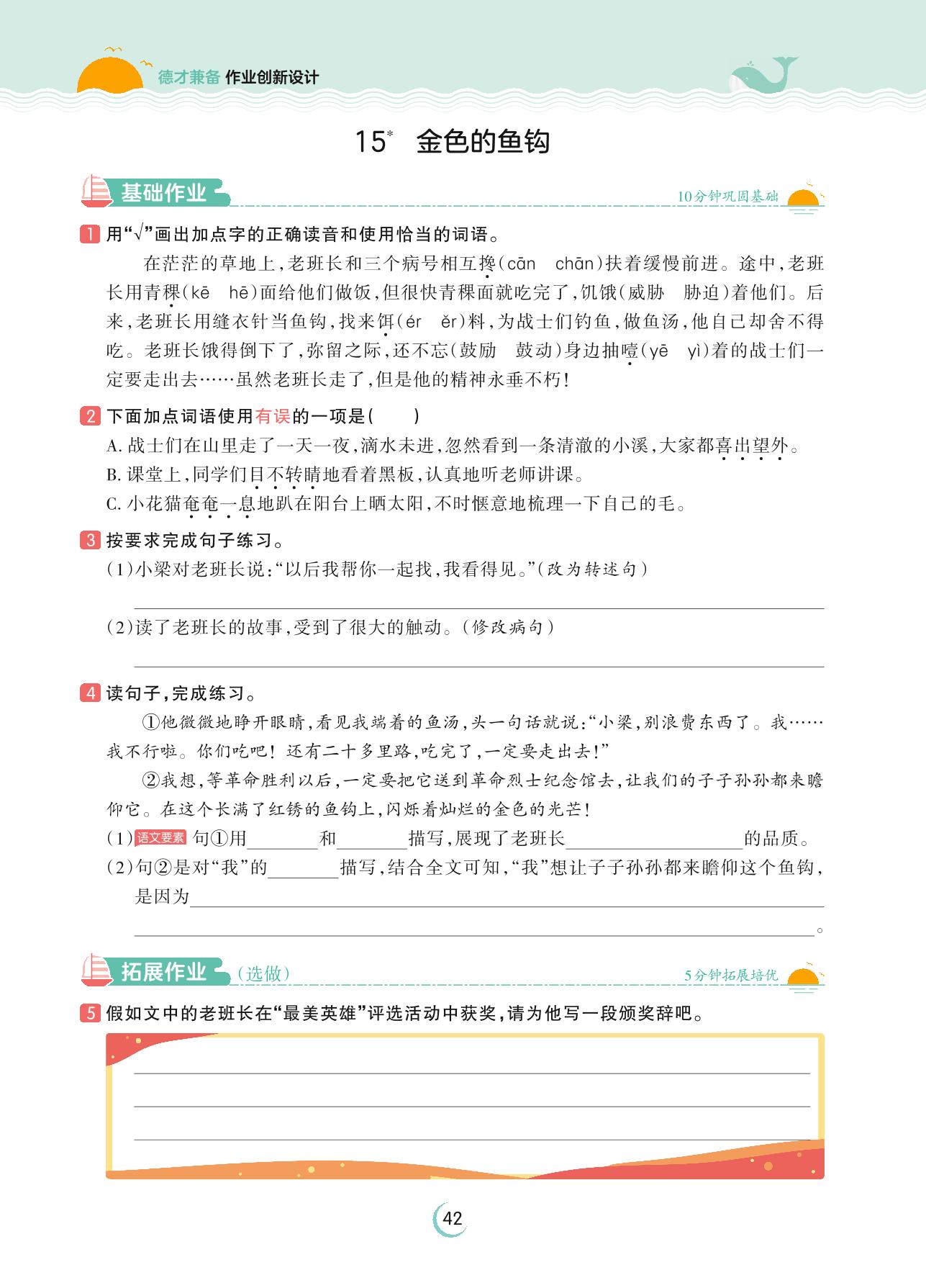 2023上册六年级语文人教版 第四单元 小说——15 金色的鱼钩