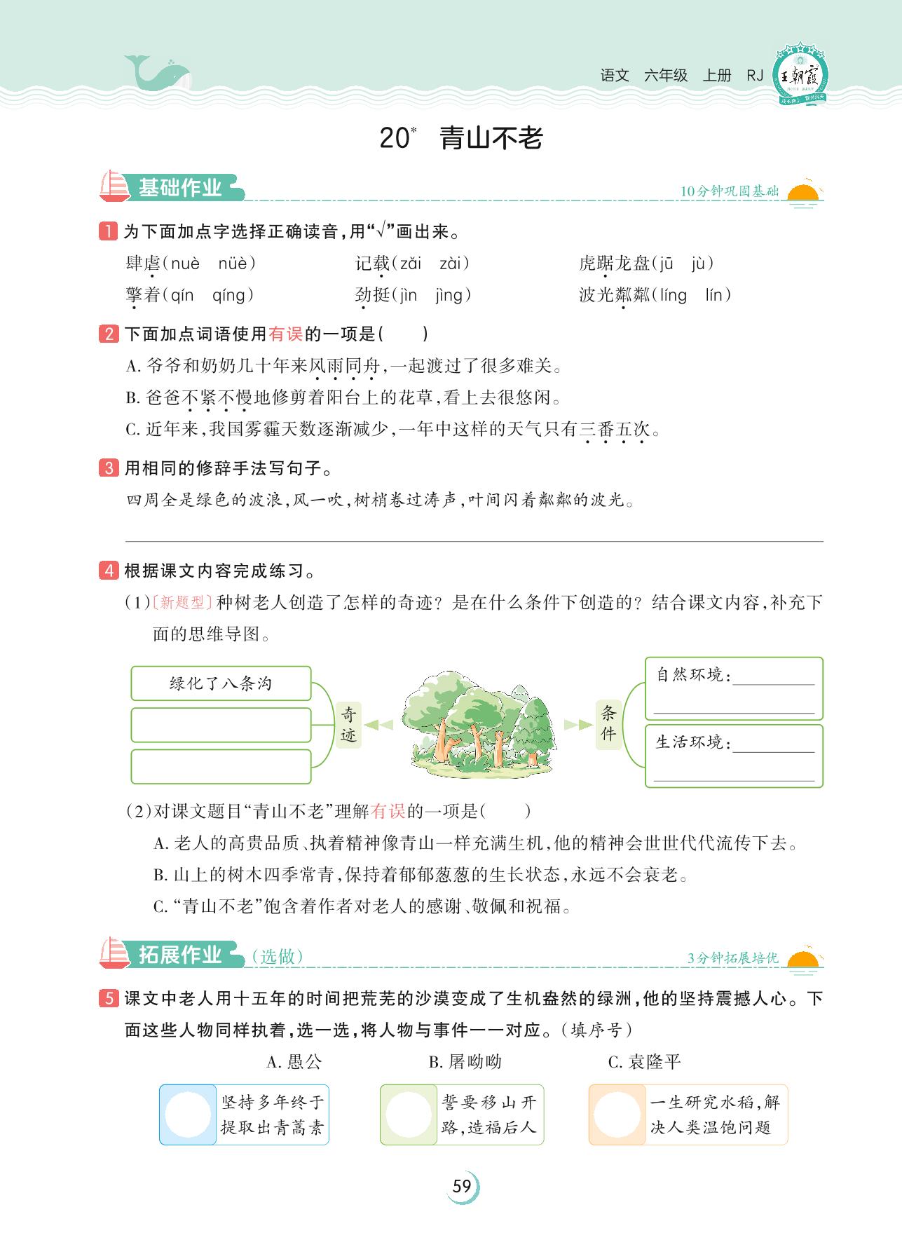 2023上册六年级语文人教版 第六单元 保护环境——20 青山不老