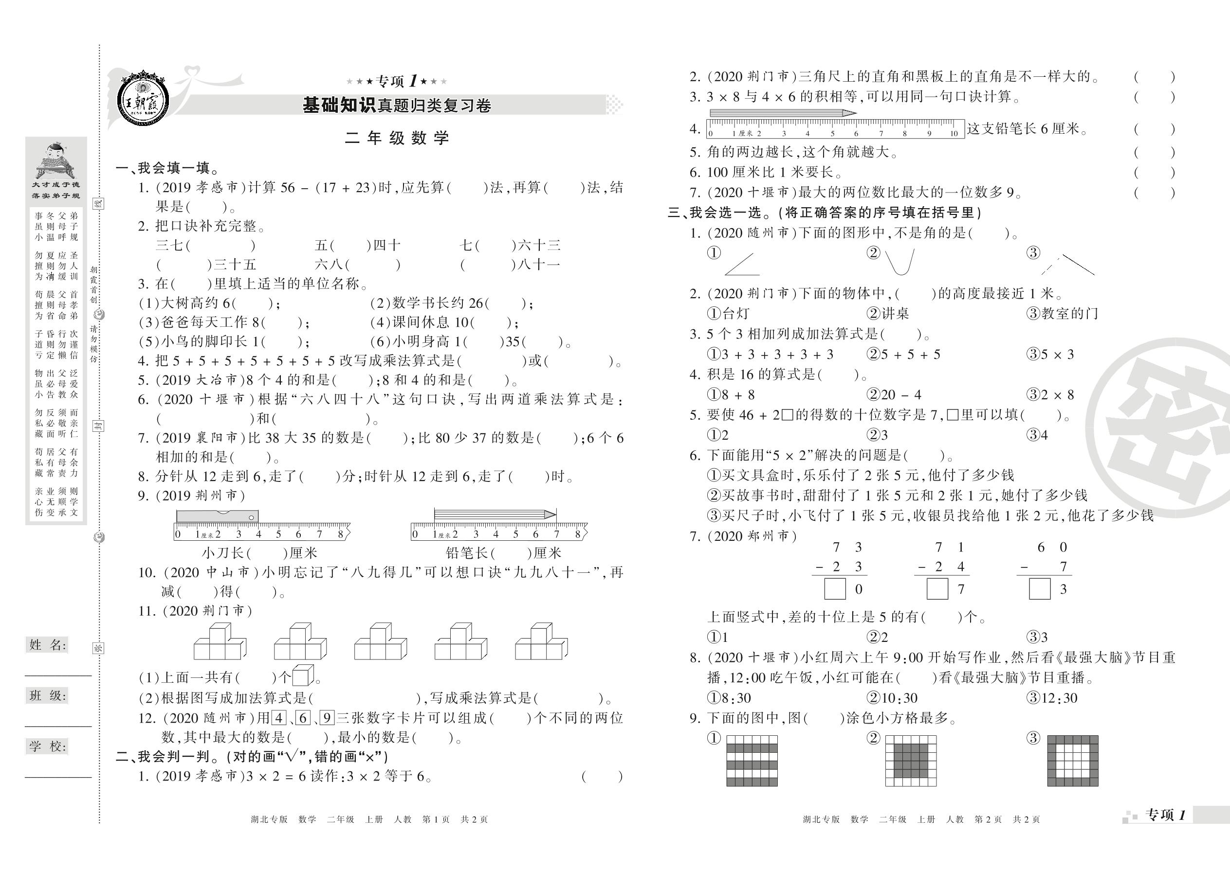 王朝霞期末专项卷——基础知识、计算真题归类复习二年级上册数学(人教版)_R21080385833【0】