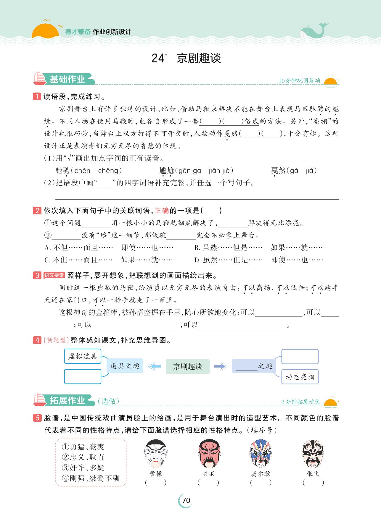 2023上册六年级语文人教版 第七单元 艺术之美——24 京剧趣谈
