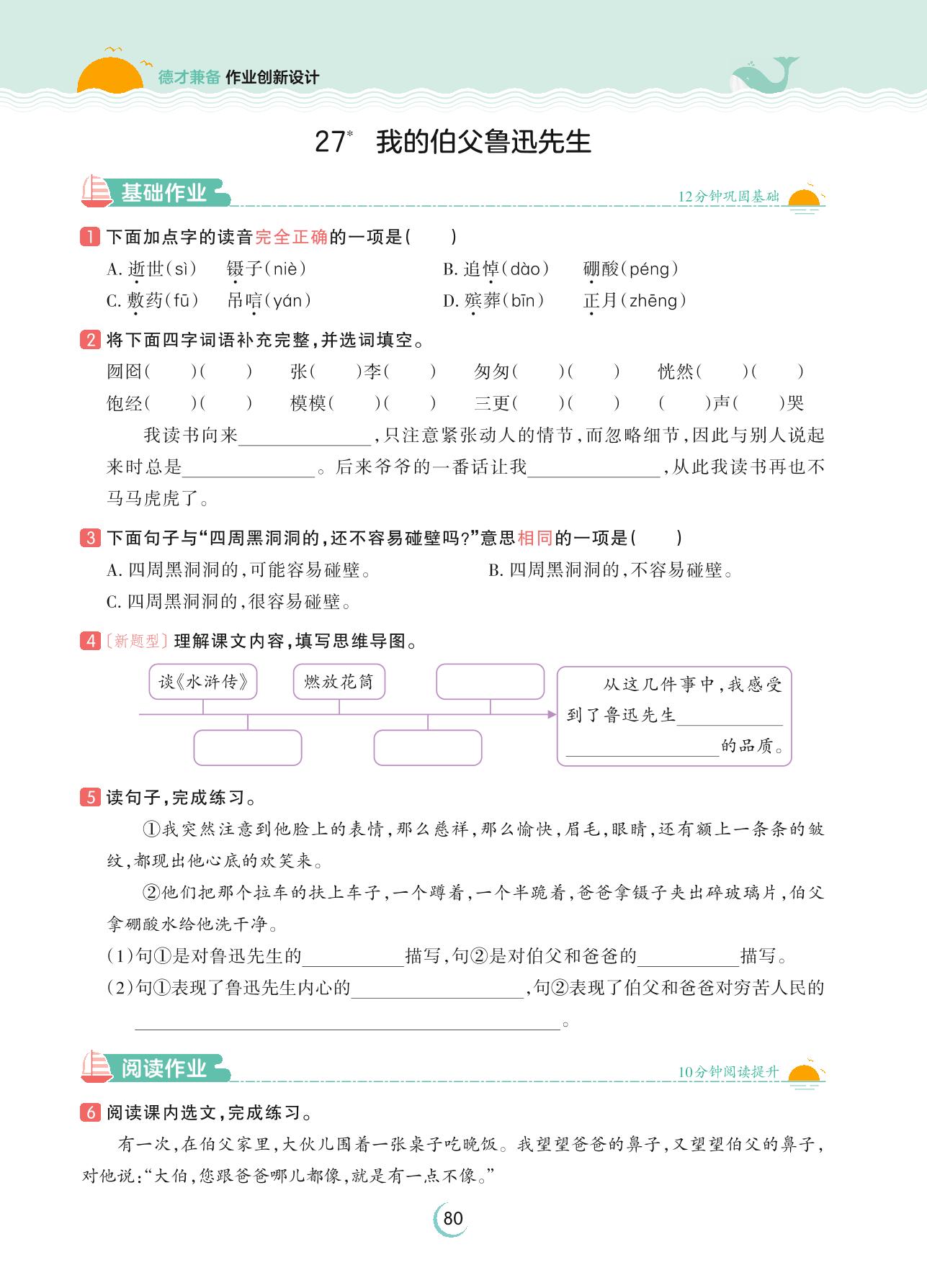 2023上册六年级语文人教版 第八单元 走近鲁迅——27 我的伯父鲁迅先生