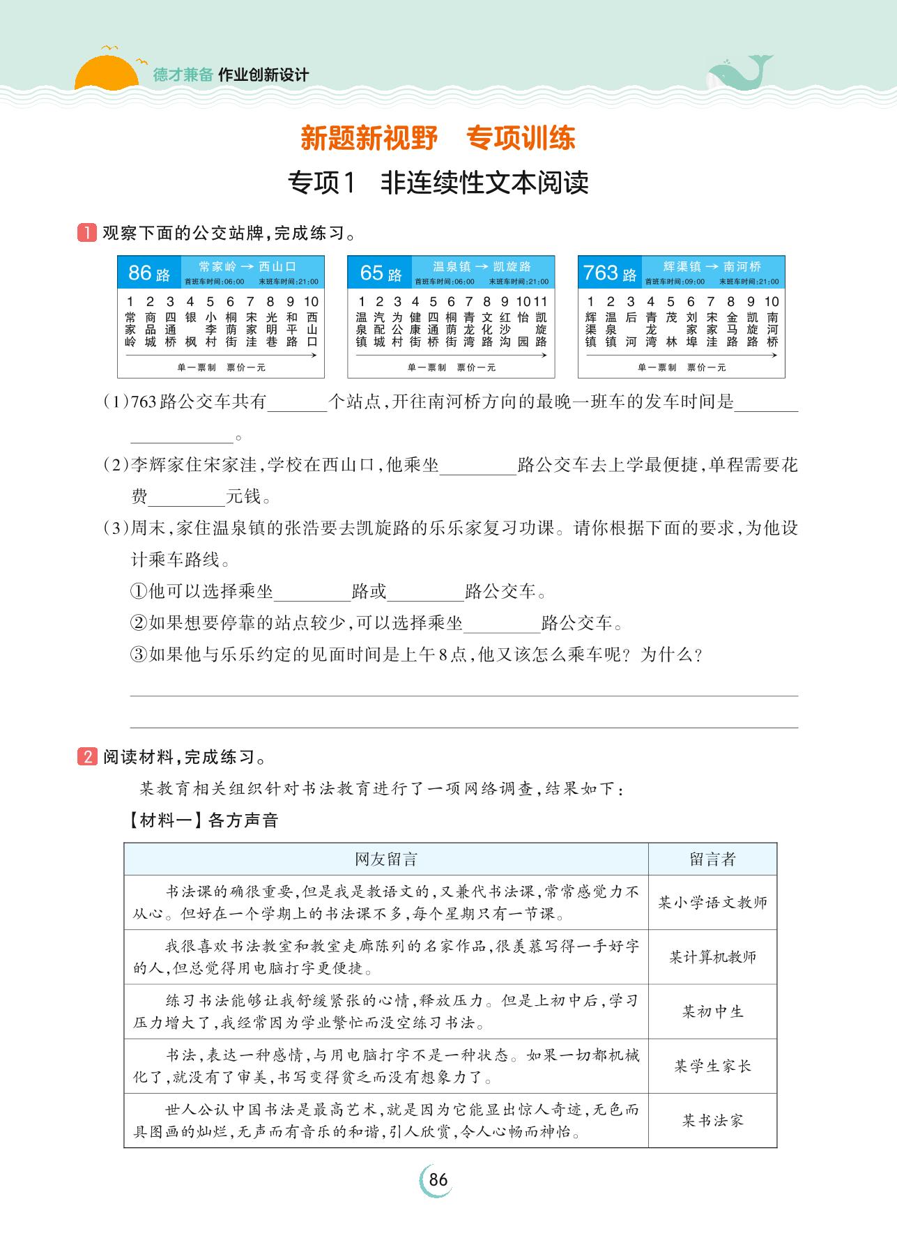 2023上册六年级语文人教版 新题新视野 专项训练——专项1 非连续性文本阅读