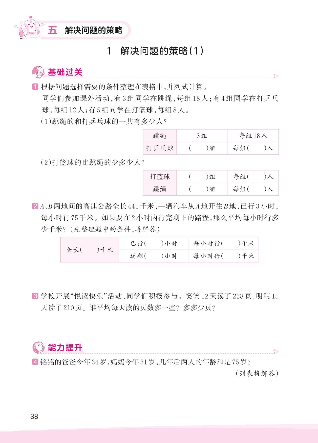 2023上册四年级数学苏教版 五 解决问题的策略——1 解决问题的策略(1)