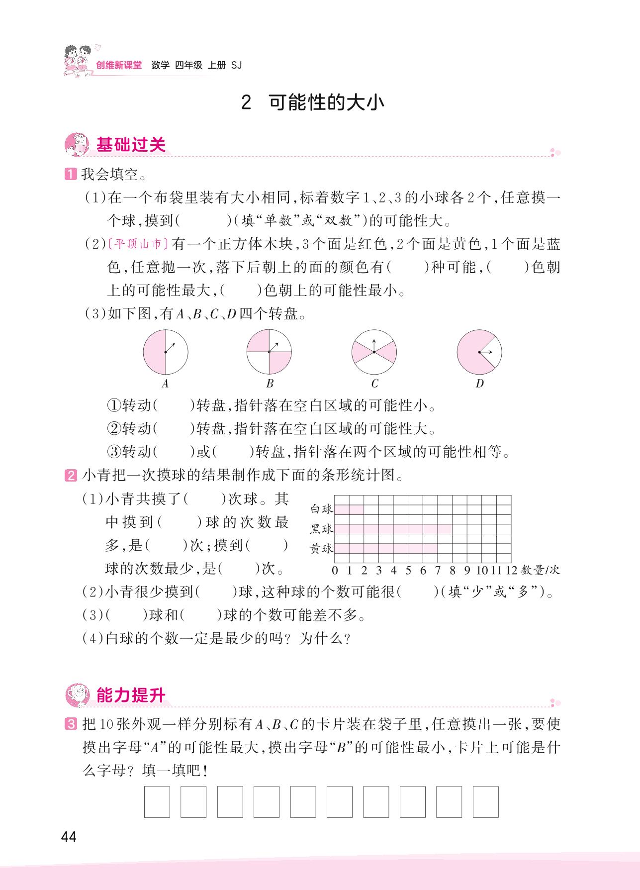 2023上册四年级数学苏教版 六 可能性——2 可能性的大小