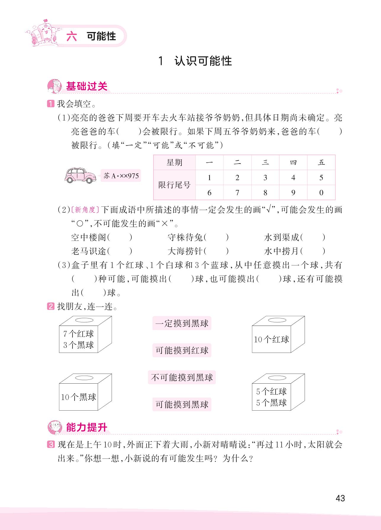 2023上册四年级数学苏教版 六 可能性——1 认识可能性