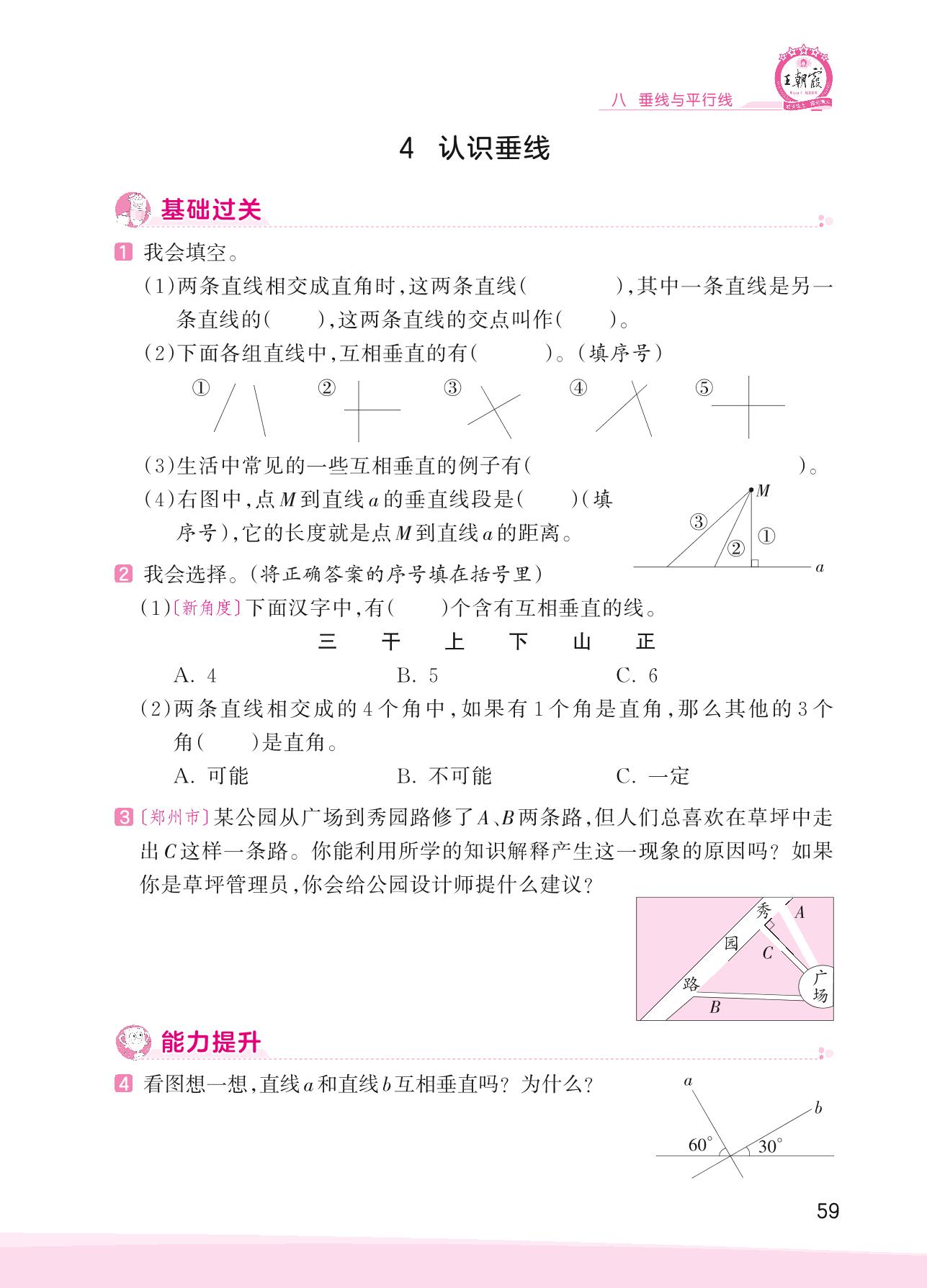 2023上册四年级数学苏教版 八 垂线与平行线——4 认识垂线
