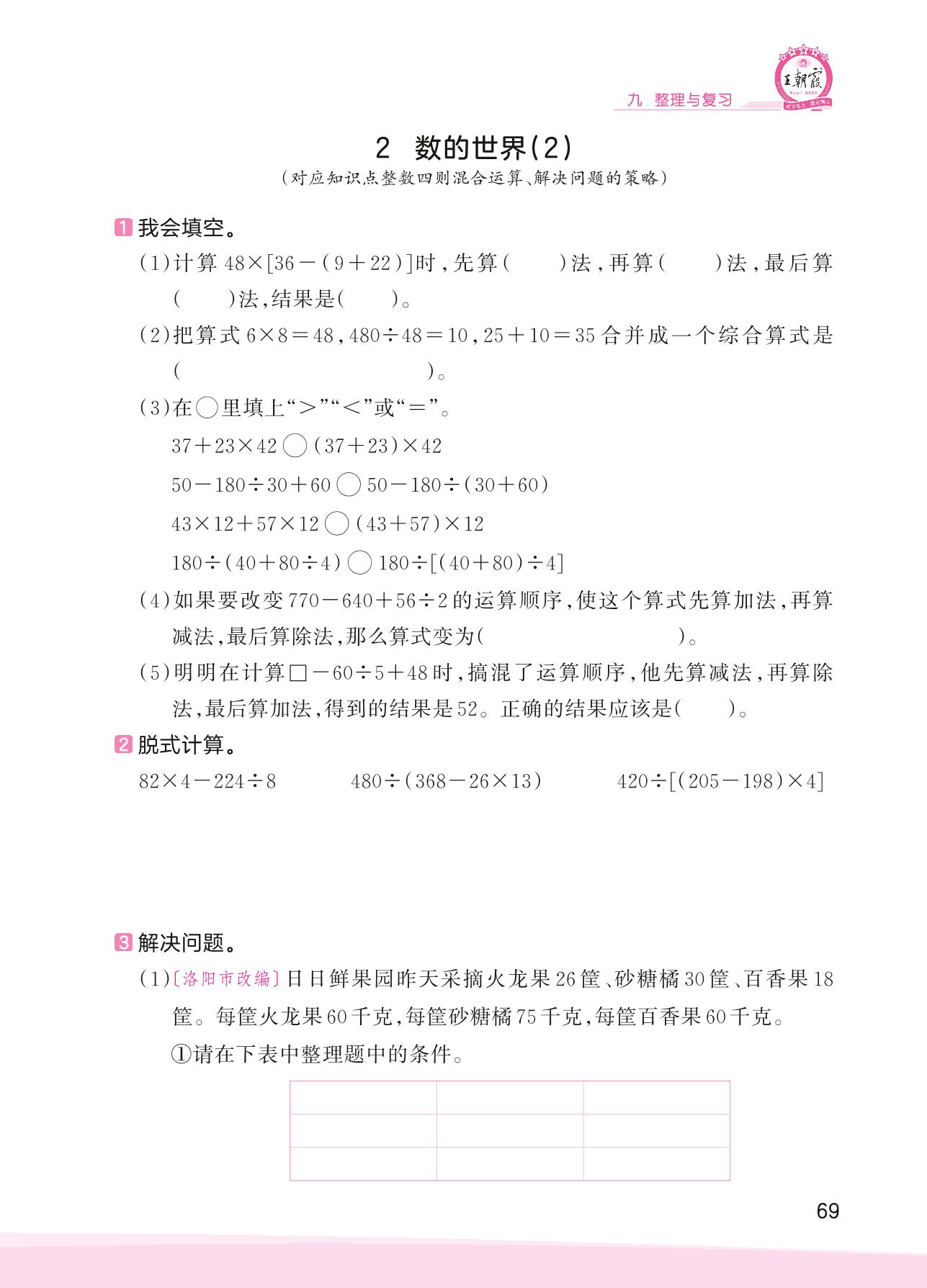 2023上册四年级数学苏教版 九 整理与复习——2 数的世界(2)
