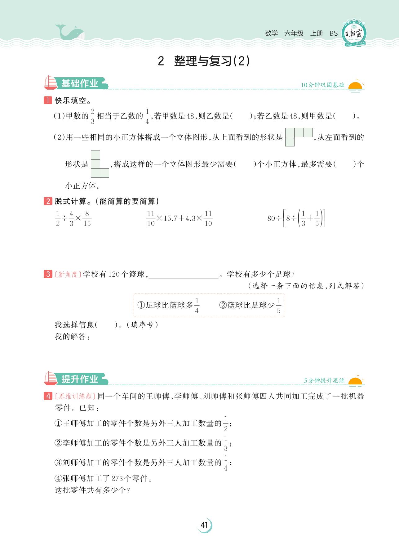 2023上册六年级数学北师版 整理与复习——2 整理与复习(2)