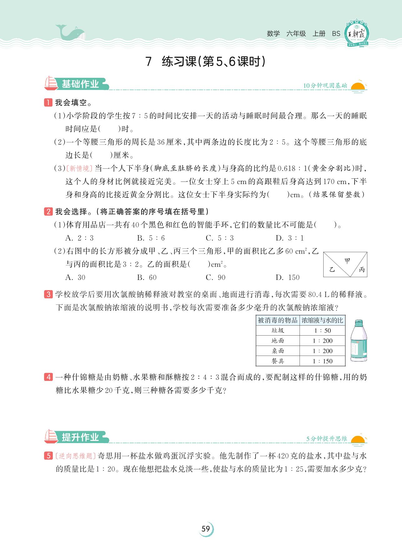 2023上册六年级数学北师版 第六单元 比的认识——7 练习课(第5、6课时)