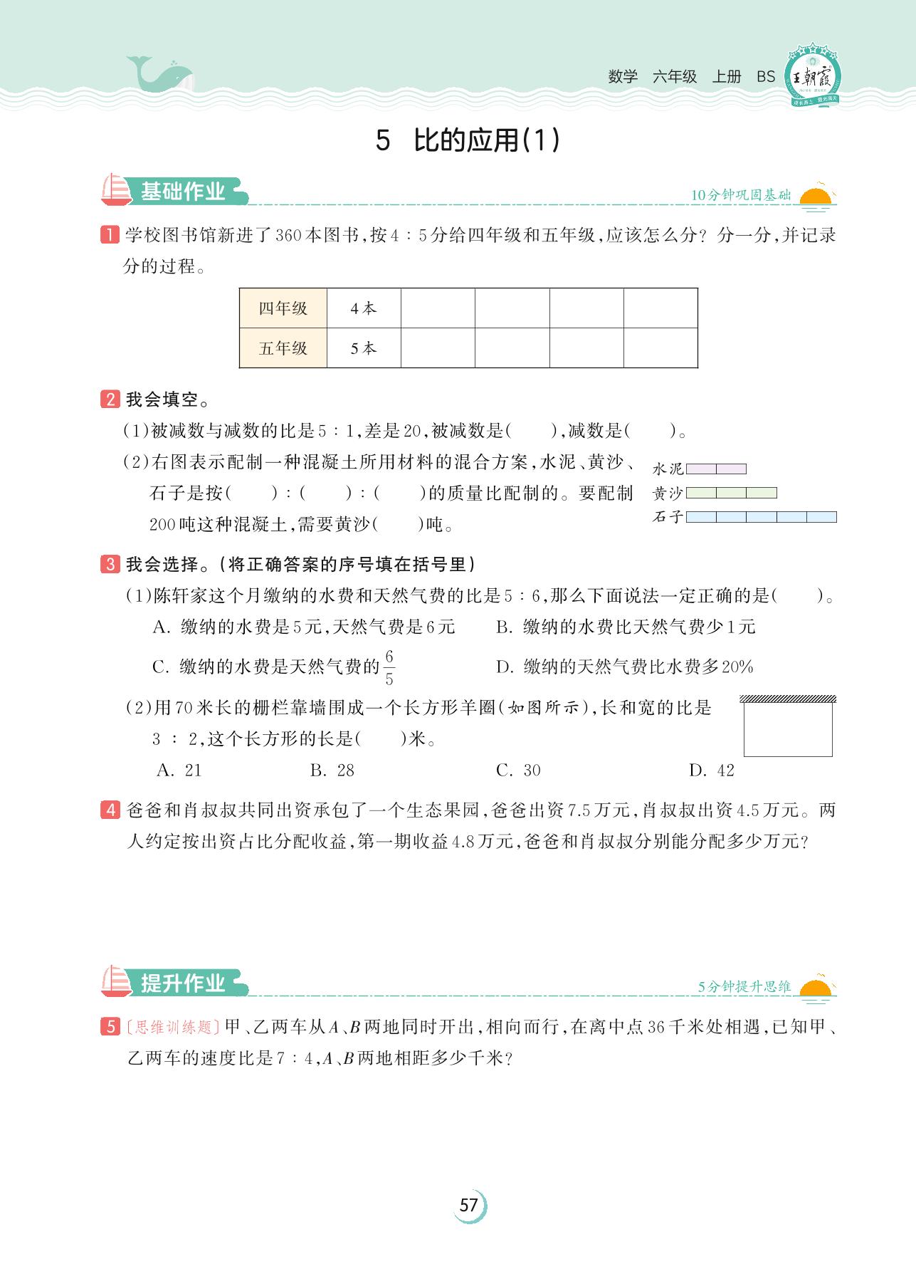 2023上册六年级数学北师版 第六单元 比的认识——5 比的应用(1)