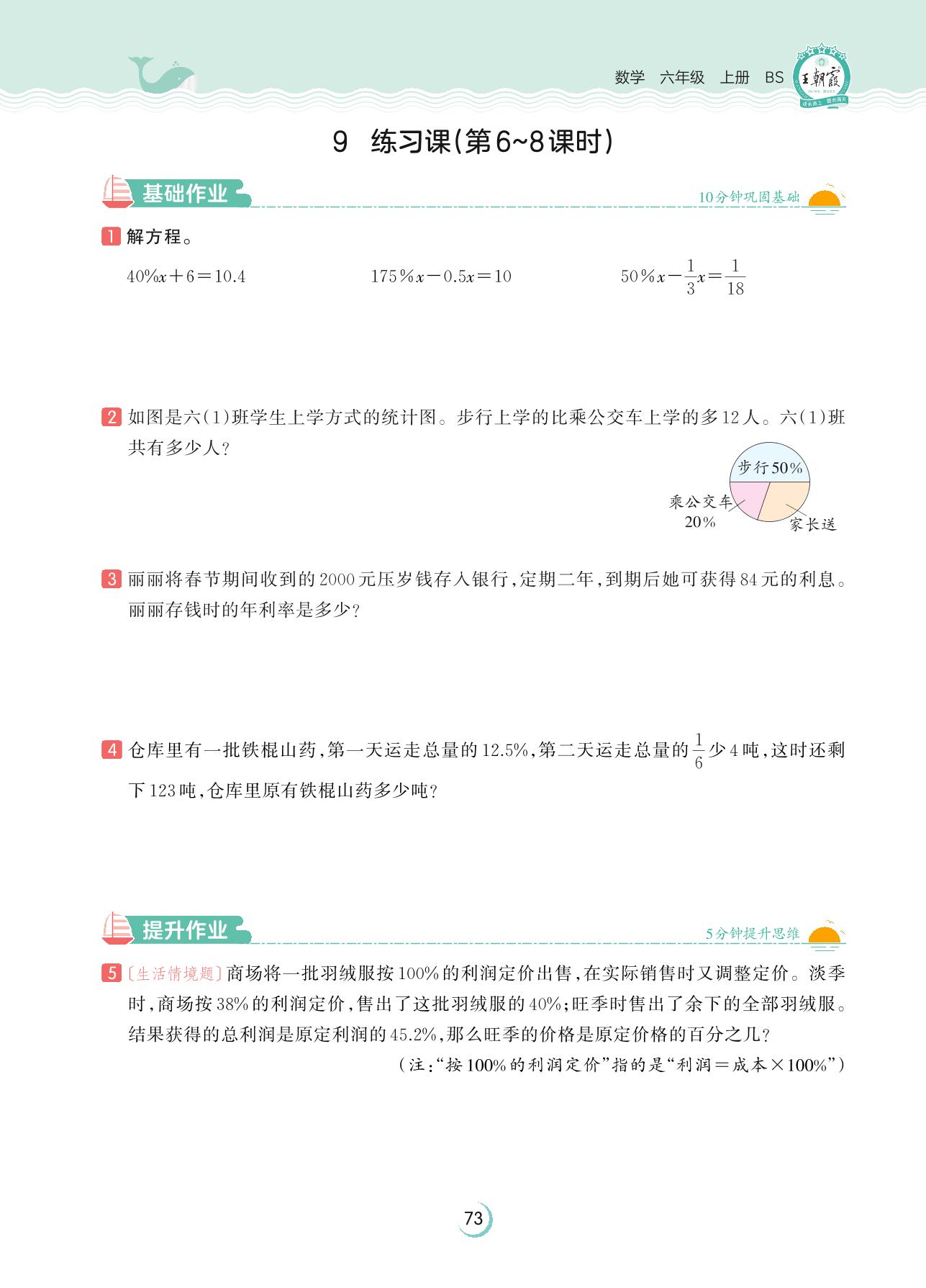 2023上册六年级数学北师版 第七单元 百分数的应用——9 练习课(第6~8课时)