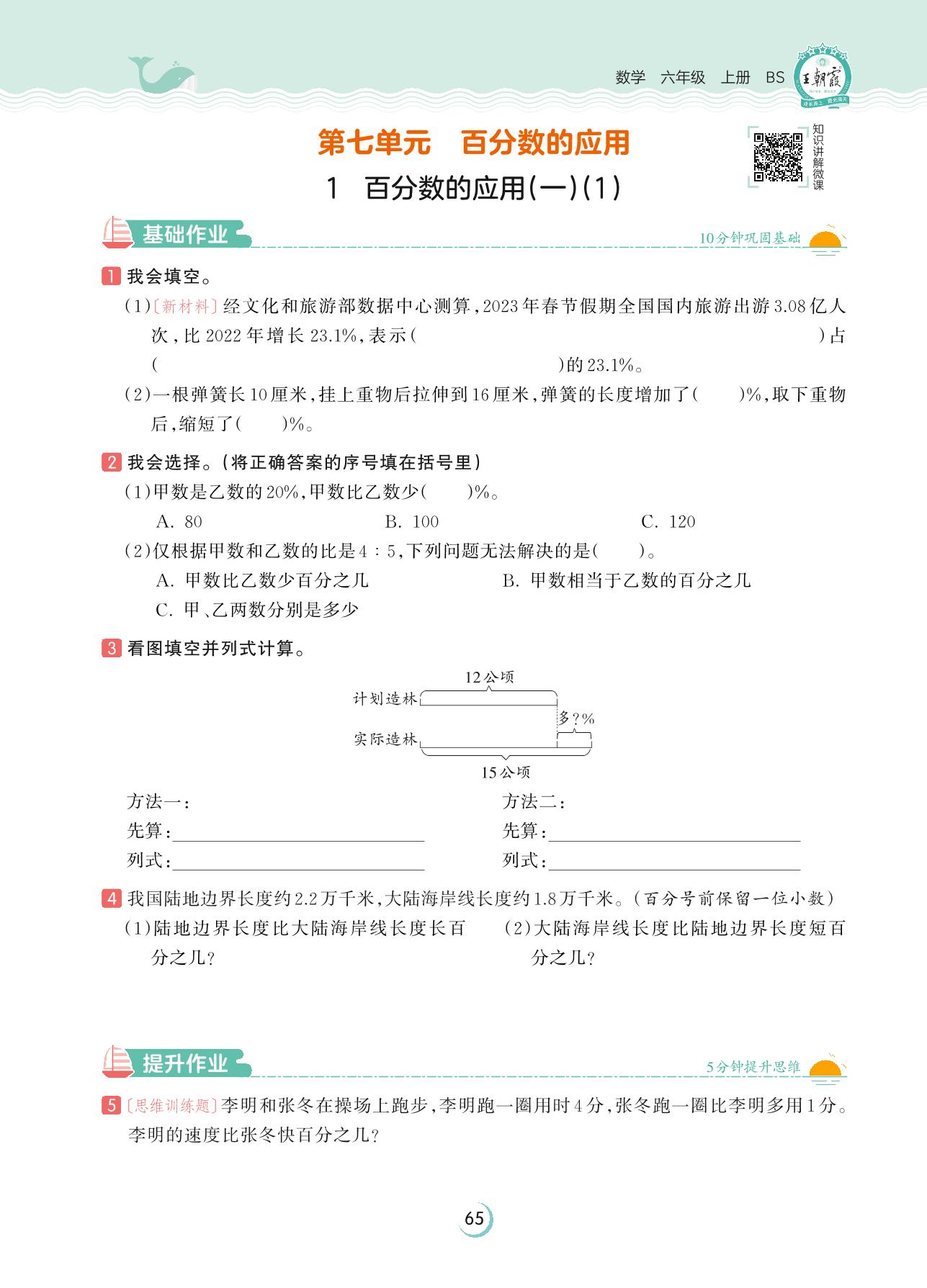 2023上册六年级数学北师版 第七单元 百分数的应用——1 百分数的应用(一)(1)