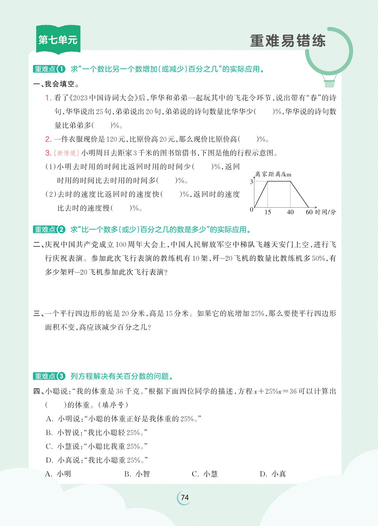 2023上册六年级数学北师版 第七单元重难易错练