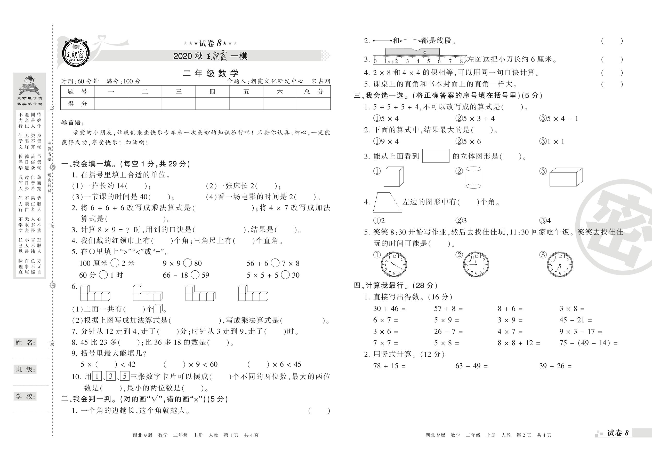 王朝霞期末模拟卷二年级上册数学(人教版)_R21080385855【8】